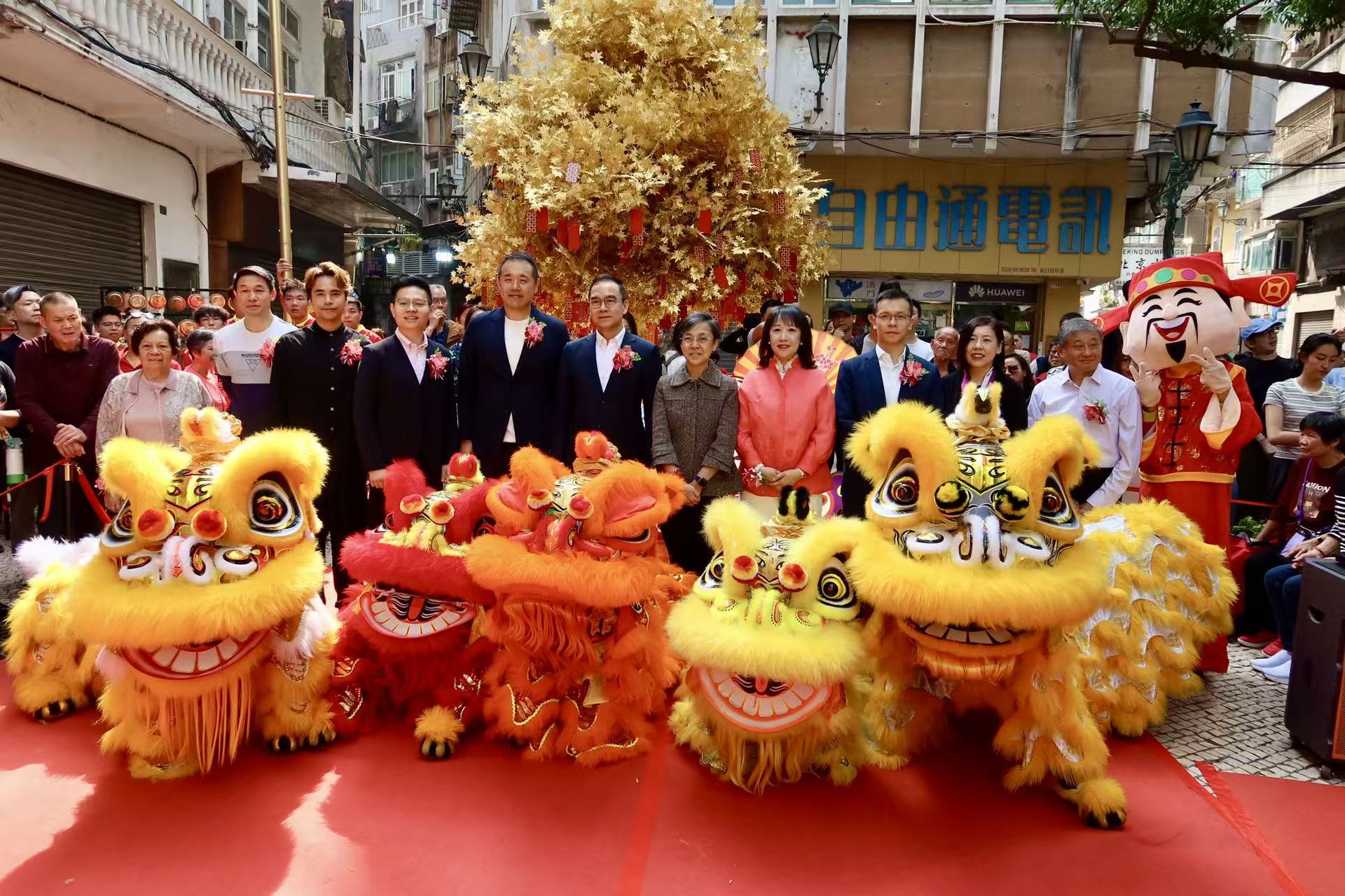 儀式後,嘉賓及坊會負責人陪同「財神」及醒獅等進區向商戶拜年,送上新春祝福。