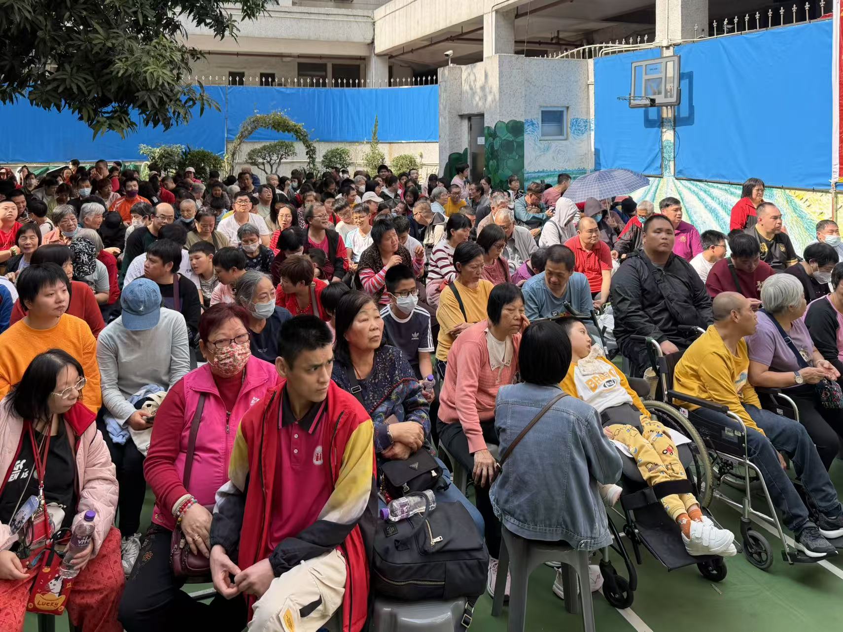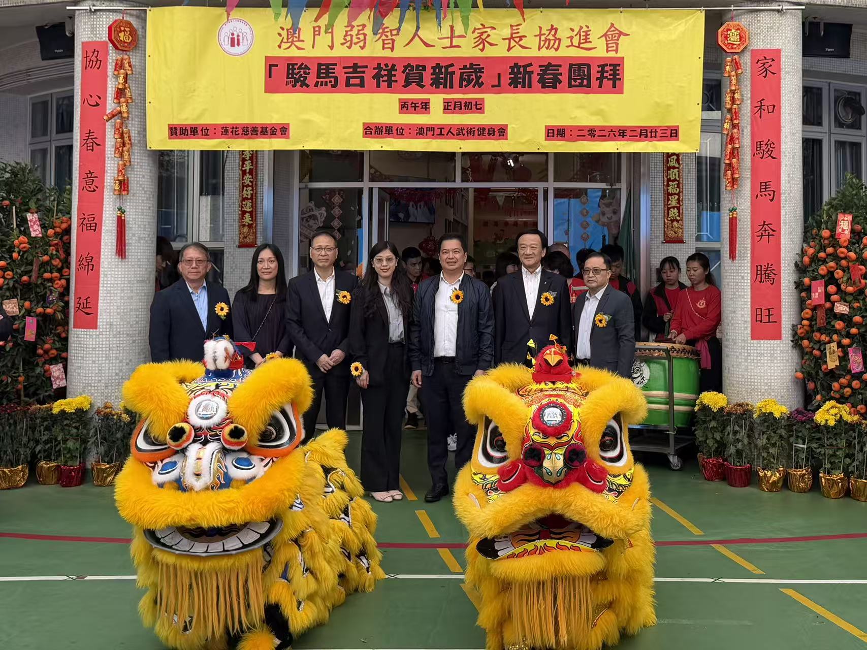【即時新聞】由澳門弱智人士家長協進會主辦的2026年「駿馬吉祥贺新歲」新春團拜活動,今日(大年初七)下午二時半假黑沙環廣華新村中心花園一曉光中心舉行。希望藉新春喜慶的歡樂節日,促進會員及其家庭間的和諧,維繫家長與智障子女的親子關係,讓會員在春節期間亦感受到來自社會的溫暖,節日的祝福。活動內容包括有:工人武術健身會醒獅助興、財神派發利是、會員家長及學員表演、大抽獎等,出席人數約950人,當中有近450位智障人士,場面熱鬧。