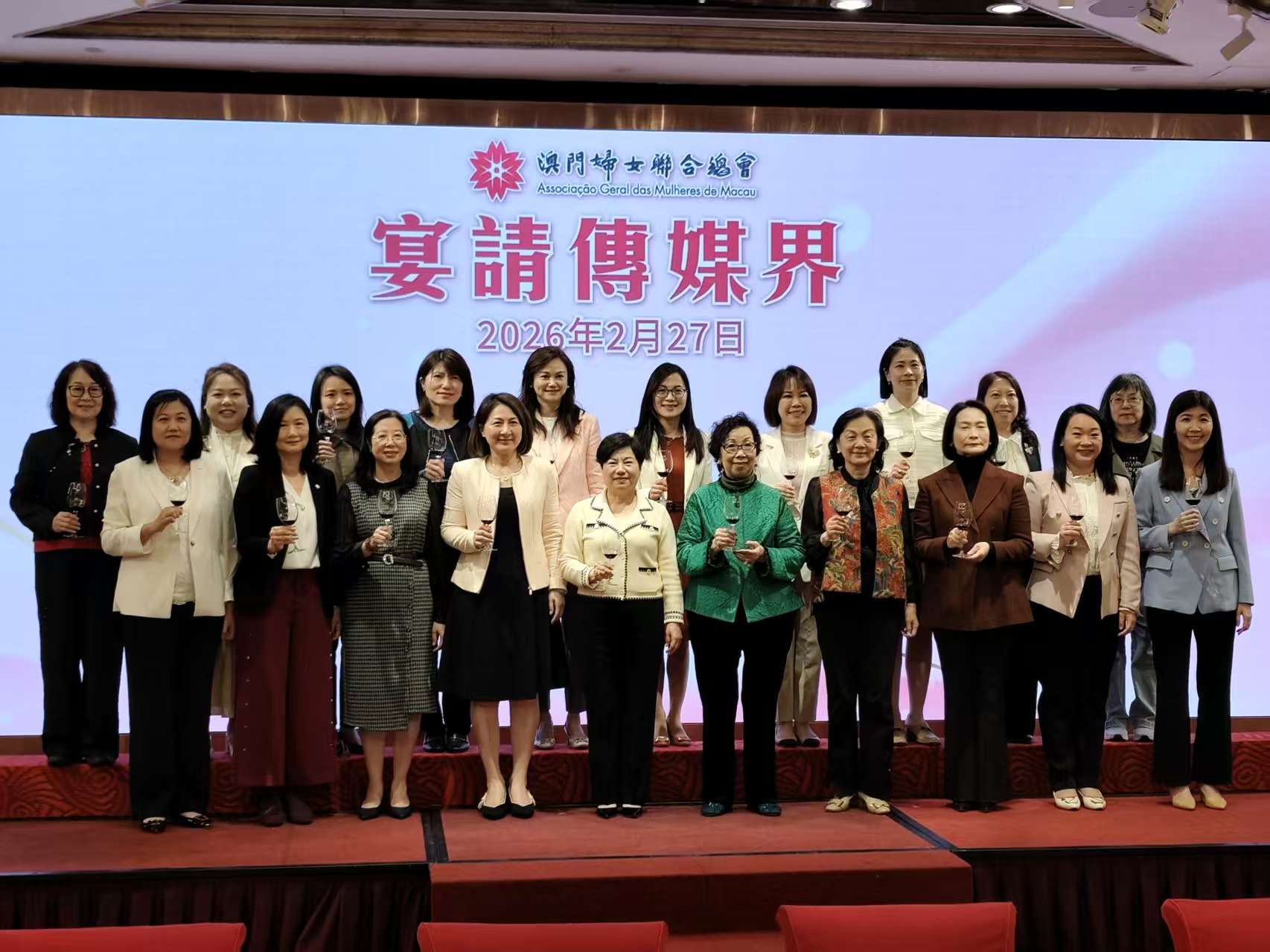 宴會中午假凱旋門4樓宴會廳舉行,會長劉金玲,名譽會長鄭秀明,理事長袁小菱,監事長容永恩,副會長陳虹、呂育敏、盧潔兒、張佩萍、黃潔貞、周惠儀、梁美玲,副理事長兼秘書長莊玲玲,副理事長呂綺穎、羅萍、林毓霞、吳嘉婷、吳子寧、吳紫薇、歐陽月勝,以及超過30間駐澳傳媒、本澳報社及電子傳媒的負責人出席。