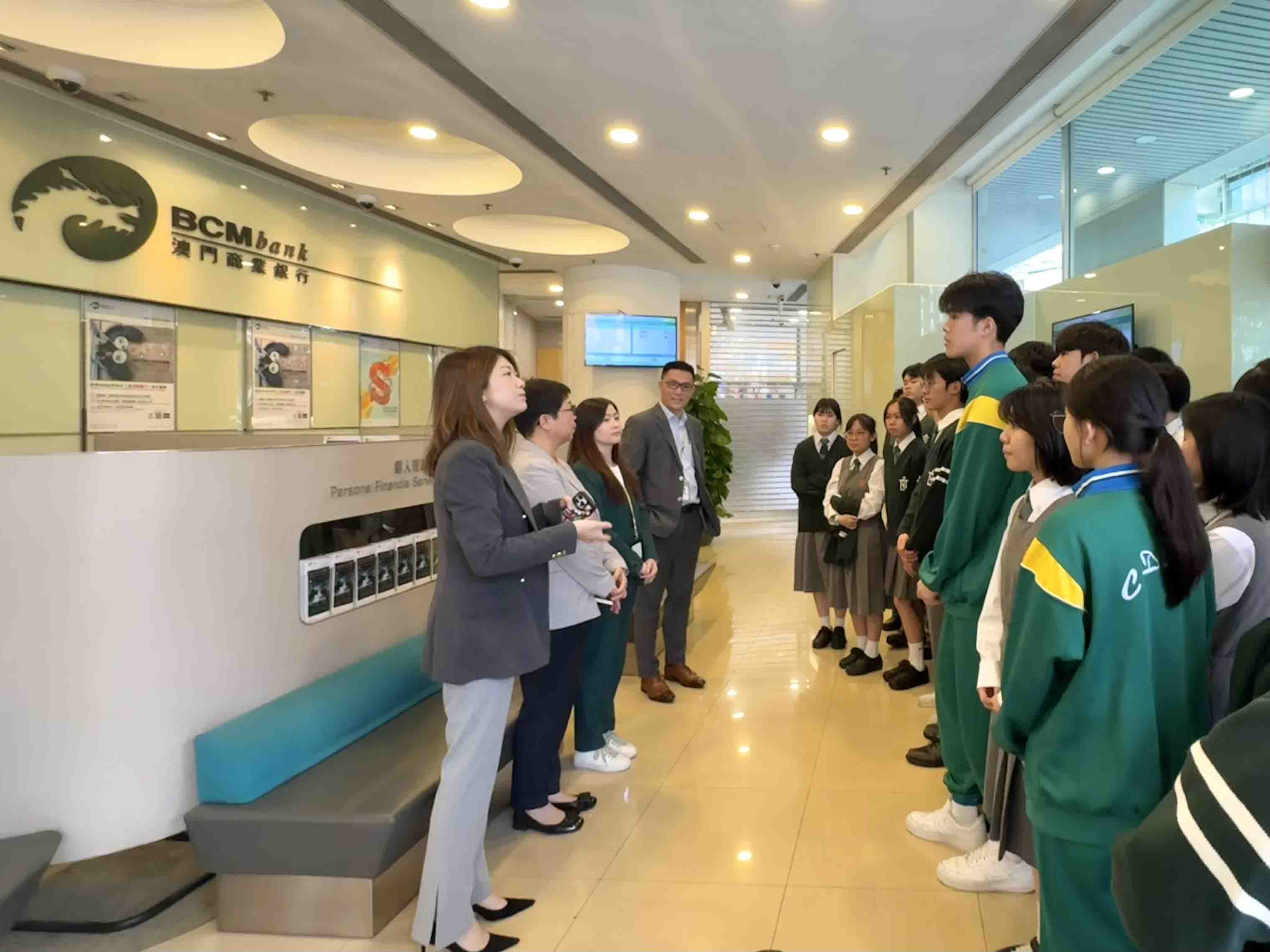 【即時新聞】為助力本澳學生深入了解銀行業發展趨勢及未來就業前景,澳門商業銀行於2月邀請聖若瑟教區中學第三校一眾高二學生及老師蒞臨澳門商業銀行總行進行《解構銀行業及職涯探索之旅》參訪活動,並獲該行職員熱情接待。活動透過實地參觀銀行運作及專題分享會,帶領學生多角度認識銀行業及其發展趨勢,為未來升學方向提供啟發並及早進行職涯規劃。