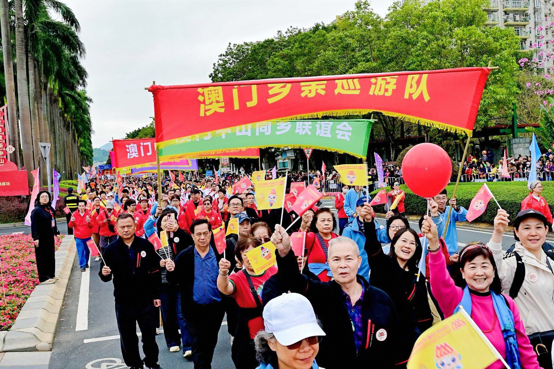 9時45分,第39屆中山慈善萬人行巡遊活動起步,熟悉的慈善萬人行主題曲立時響起,萬人齊聚的興中道也沸騰起來。由全市各界組成的包括港澳同鄉社團在內的260多支巡遊隊伍、1萬多人昂首闊步、浩蕩前行,與沿街市民遊客熱情互動。