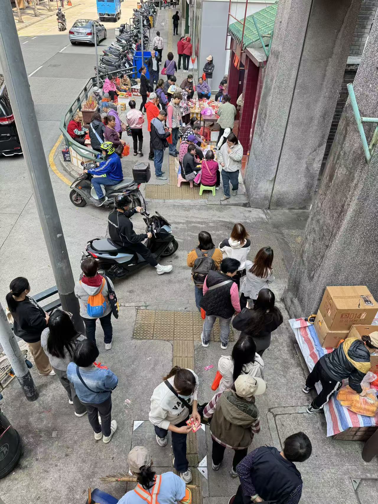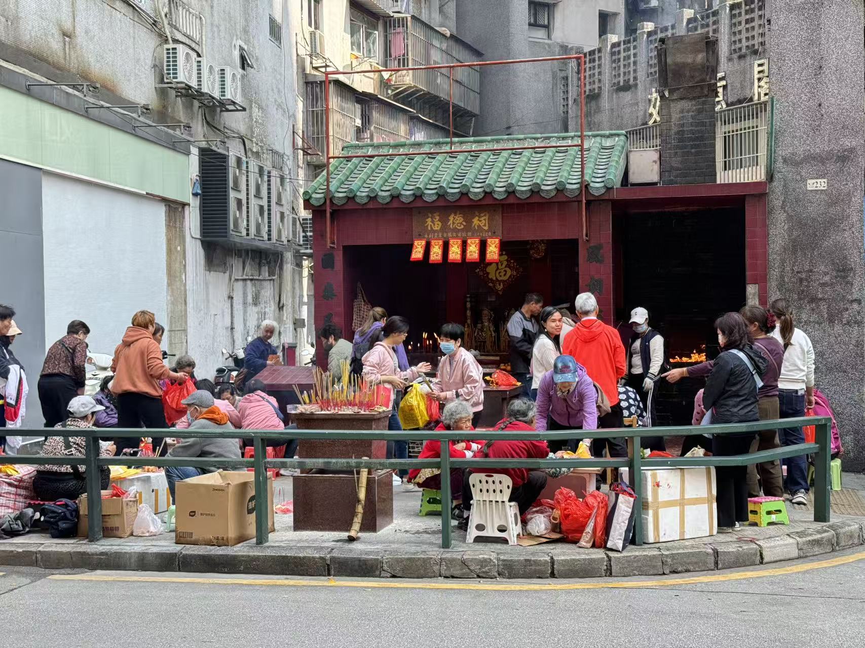 今日早上,在巴波沙大馬路的福德祠外便聚滿人潮,場面熱鬧。多位經驗豐富的「專業打手」在場設檔,為居民提供代打服務,祈福聲與拍打聲此起彼落,象徵將霉運與小人驅走。