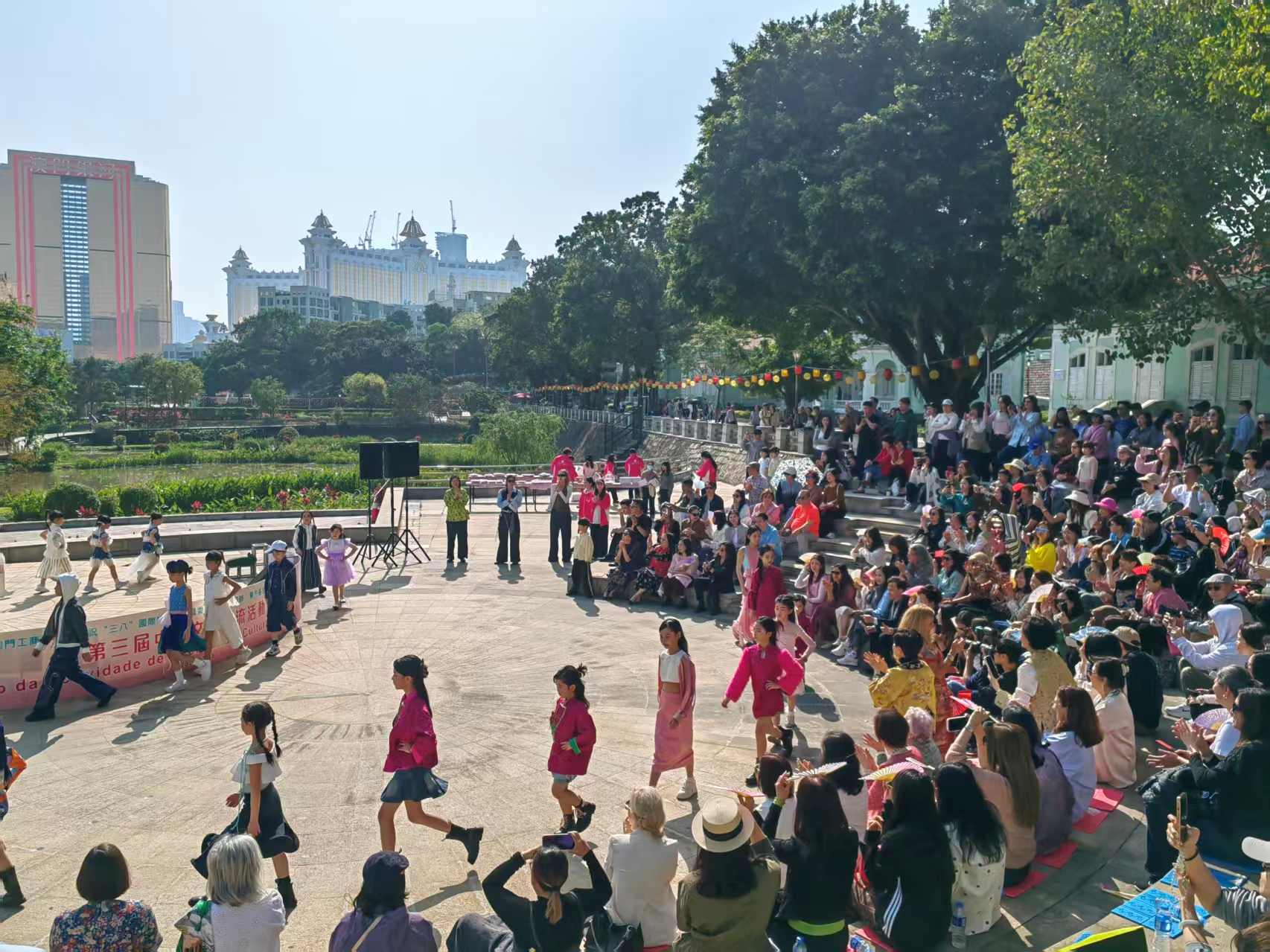 活動內容豐富,現場設中葡工藝作品展覽與傳統服飾體驗區,展示「葡藝匠心」工作坊成果與中式女性服飾,讓現場觀眾沉浸式感受中西工藝與服飾之美,還安排中國粵曲、西方弘樂和葡式音樂等表演,以及由30位小小模特兒登場演繹中葡融合時裝秀,展現童趣與文化交融之美,活動吸引大批市民及家長參與,氣氛熱烈。