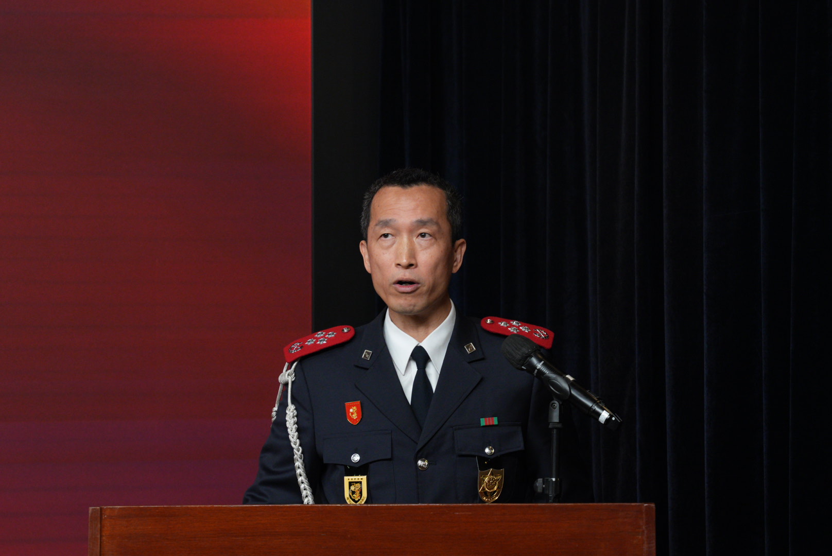 他又期望各位畢業學員保持高度的責任感和使命感,在日後的警務工作中,忠誠履職,而且毋忘保安高校的悉心栽培,面對艱巨任務,依然保持積極奮進的態度、迎難而上,並且秉持「廉潔奉公、以民為本」的服務意識,以清廉實幹取信於民、以秉公用權贏得人心,讓市民認同和支持部隊的工作,締造澳門社會的和諧安穩。