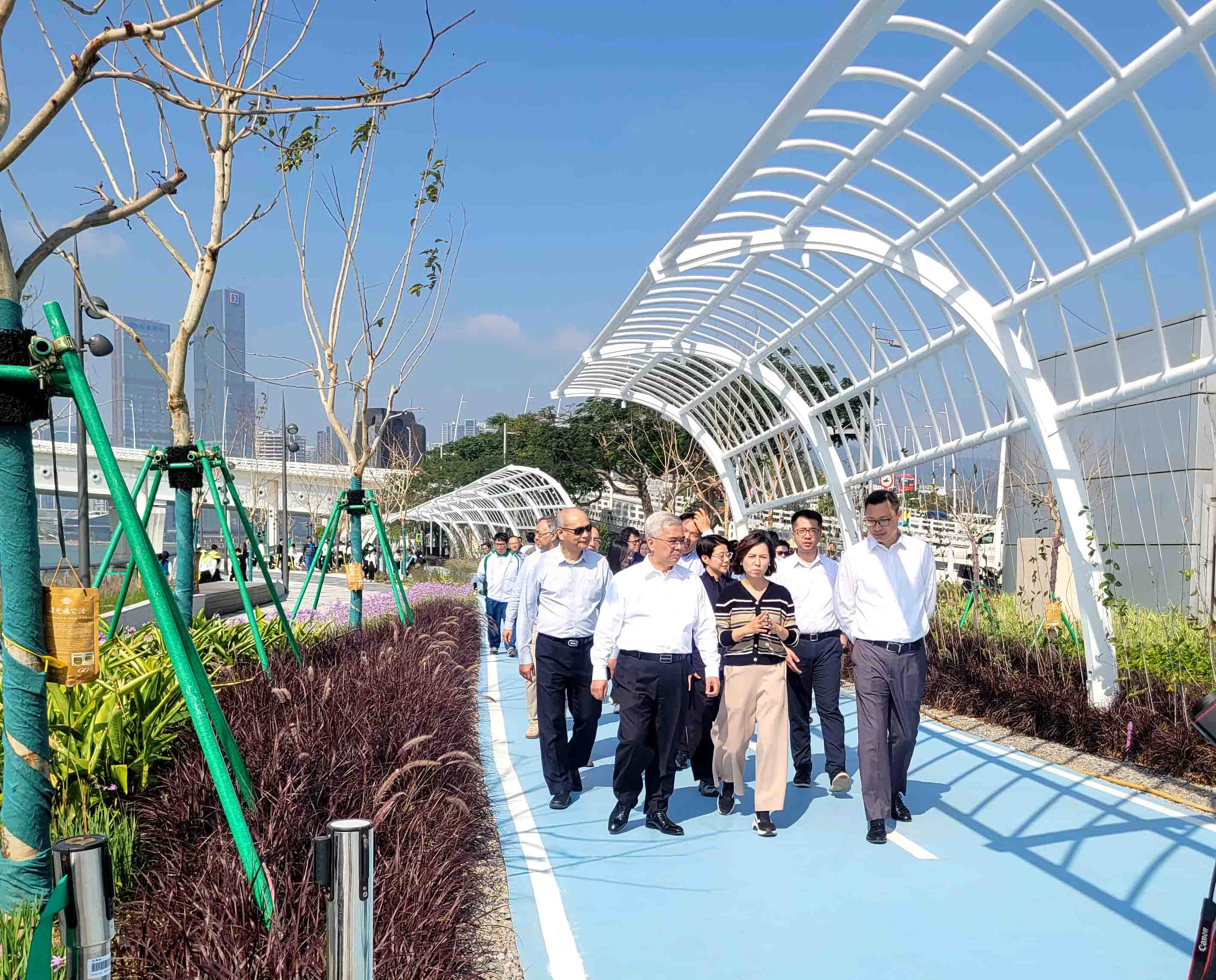 關於南岸海濱綠廊第二區的進展,周偉迎受訪時表示,該區以綠化、跑步及騎單車為主要功能,預計短期內對外開放。目前正進行最後階段的收尾工程,包括查漏補缺及優化植物生長。他透露,稍後將安排人員進行實地考察,為開放作好準備。