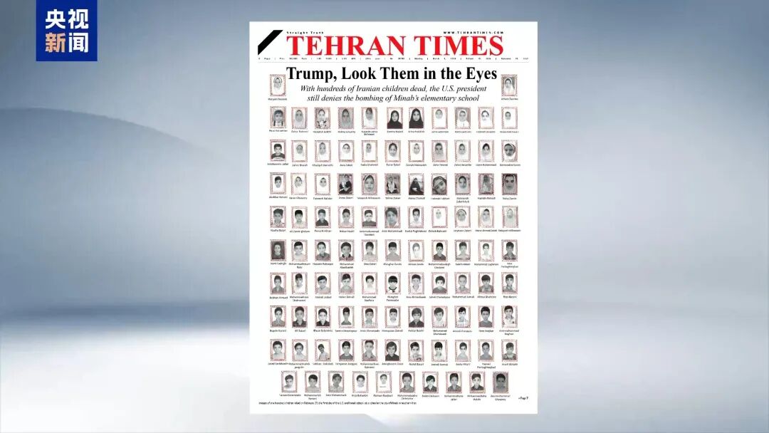 伊朗《德黑蘭時報》9日在頭版刊發了伊朗受害兒童的遺照,並配文:「特朗普,請注視他們的眼睛」。報紙頭版上的文字還稱,面對上百名伊朗兒童在空襲中喪生,美國總統特朗普至今仍否認轟炸該小學的事實。