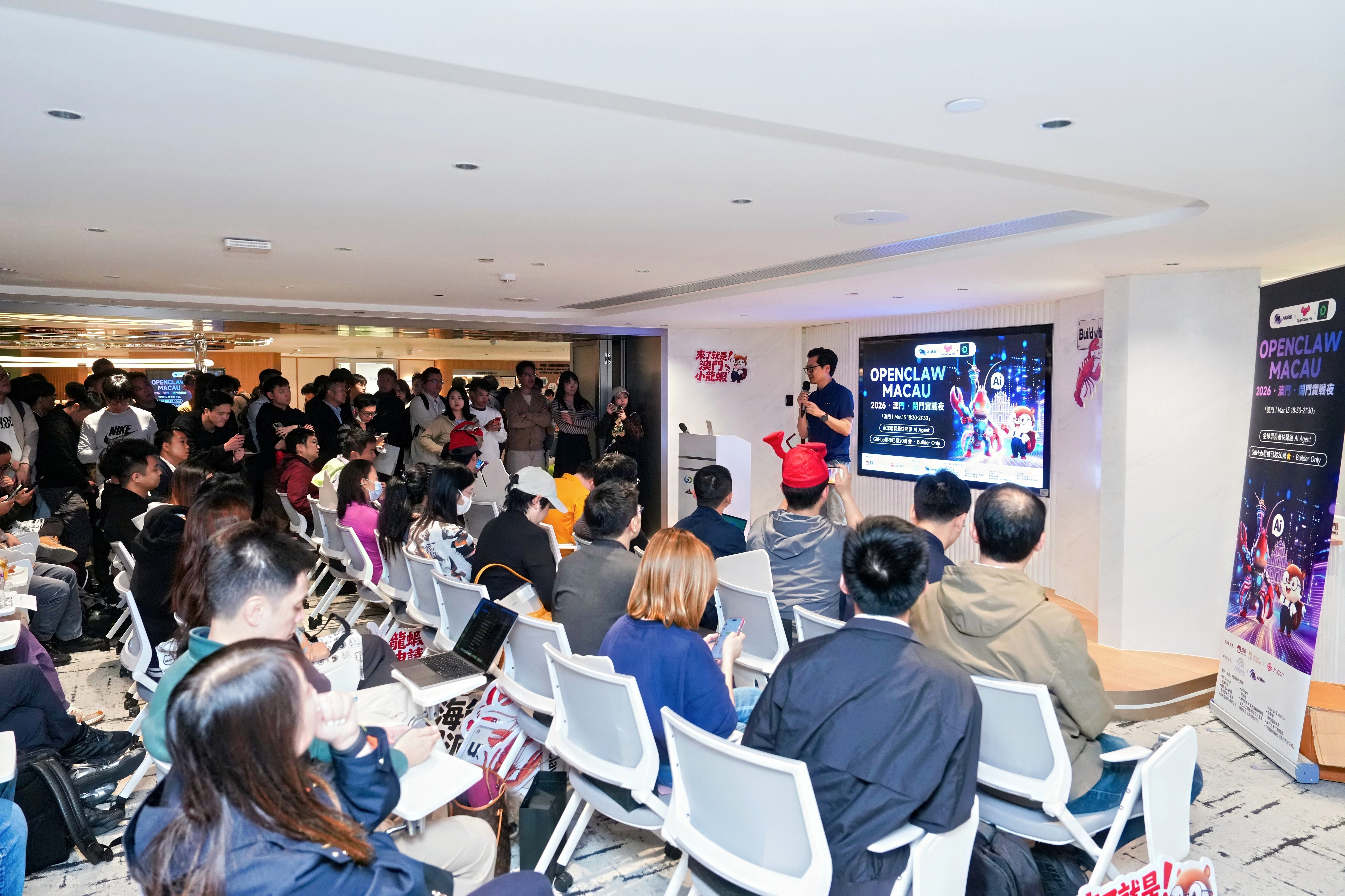 【即時新聞】全球增長最快的開源 AI Agent 項目之一 OpenClaw 首度登陸澳門。本次「OpenClaw Macau 線下聚會」於3月13日在南通商業大廈圓滿落幕,由 AI 基地、OpenClaw HK、OpenBuild 聯合主辦,澳覓APP、中國聯通(澳門)、鯤鵬會、粵港澳大灣區腦智工程研究會協辦。這場主打「好玩、硬核、純實戰」的技術沙龍,吸引了來自粵港澳大灣區的近百位企業代表、技術專家、創業者及開源愛好者齊聚,共同探討 AI Agent 從「對話框」走向「真實業務場景」的技術革新。