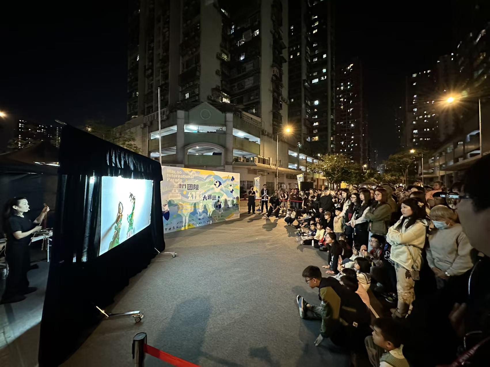 影子傳藝劇團今晚走進綠楊花園休憩區,以獨具特色的影子戲表演接棒登場,演繹多元文化故事,帶給市民不一樣的視覺享受。該團成立於2018年,宗旨為致力推動中國及世界各地皮影藝術以及「影」的藝術運用,並積極發展澳門皮影文化藝術。本次演出以皮影圖案的光影裝置為基礎,演員在空間中與裝置融合,勾勒出一幅流動的光影畫卷,同樣獲得現場居民的廣泛好評。