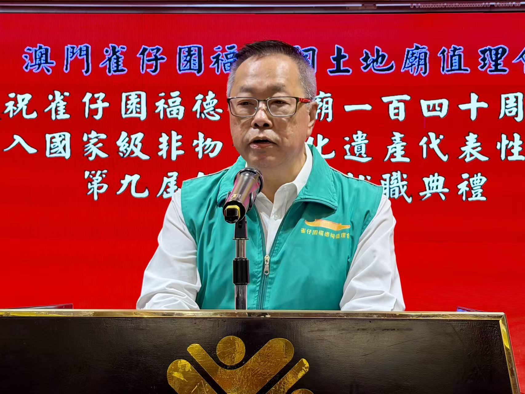 羅盛宗致詞時表示,今年是雀仔園福德祠建廟一百四十周年,也是「澳門土地信俗」列入國家級非遺五周年,別具意義。新一屆理監事將加強青年委員會發展,吸納更多年輕成員,期望為土地信俗傳承引入新思維,推動文化創新,讓非遺在新時代煥發光彩。