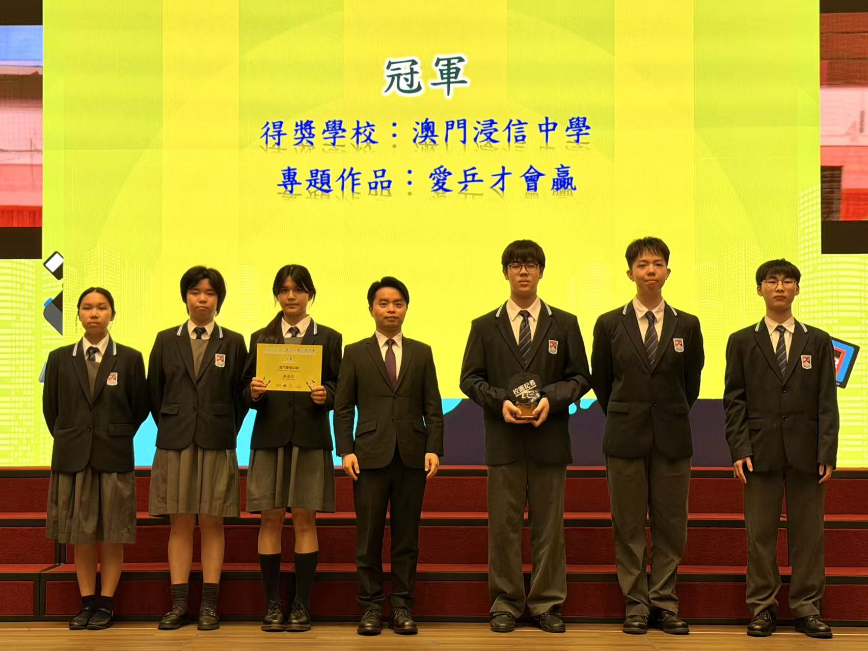 澳門浸信中學,作品;愛乒才會贏。