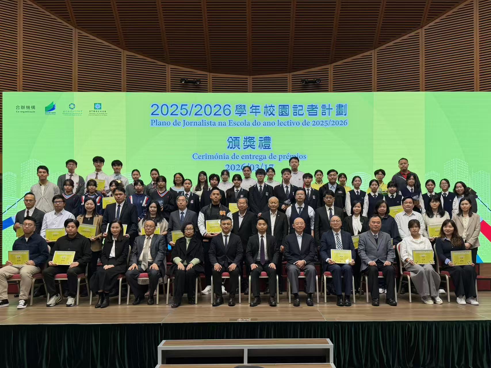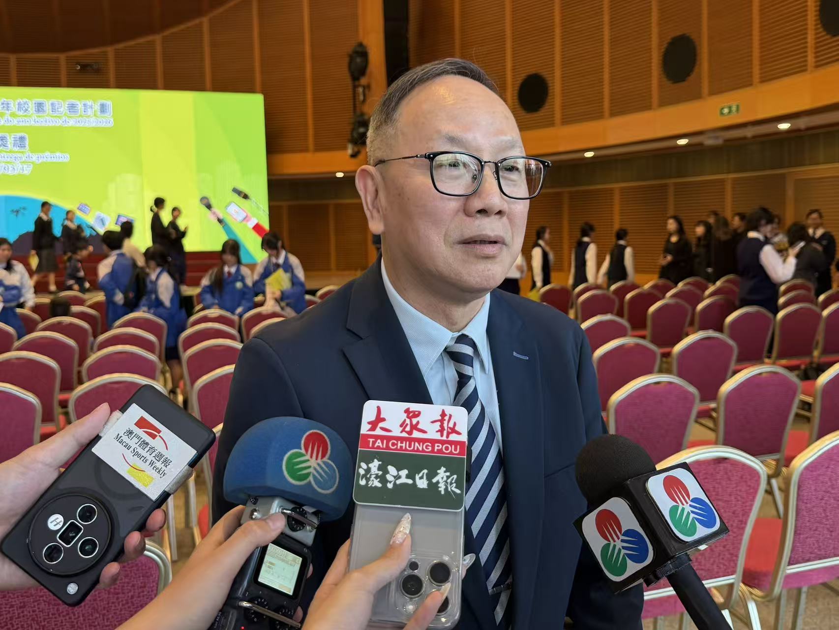 活動頒獎禮今日下午五時假澳門科學館會議中心擧行。澳門體育記者協會理事長方念湘表示,校園記者計劃已持續舉辦十幾年,該計劃面向中學生,旨在讓學生中學階段接觸社會、瞭解傳媒行業,掌握傳統媒體、多媒體及自媒體相關知識,既助力其在校內的宣傳傳播工作,也為傳媒行業培育青年力量、傳承傳媒工作理念,讓學生提前積累社會認知。本次計劃有24所學校參與,參與學生均投入學習,從零起步創作專輯,出席率逾9成,創作作品均達計劃要求,部分作品專業水準突出,獲一眾評審認可。