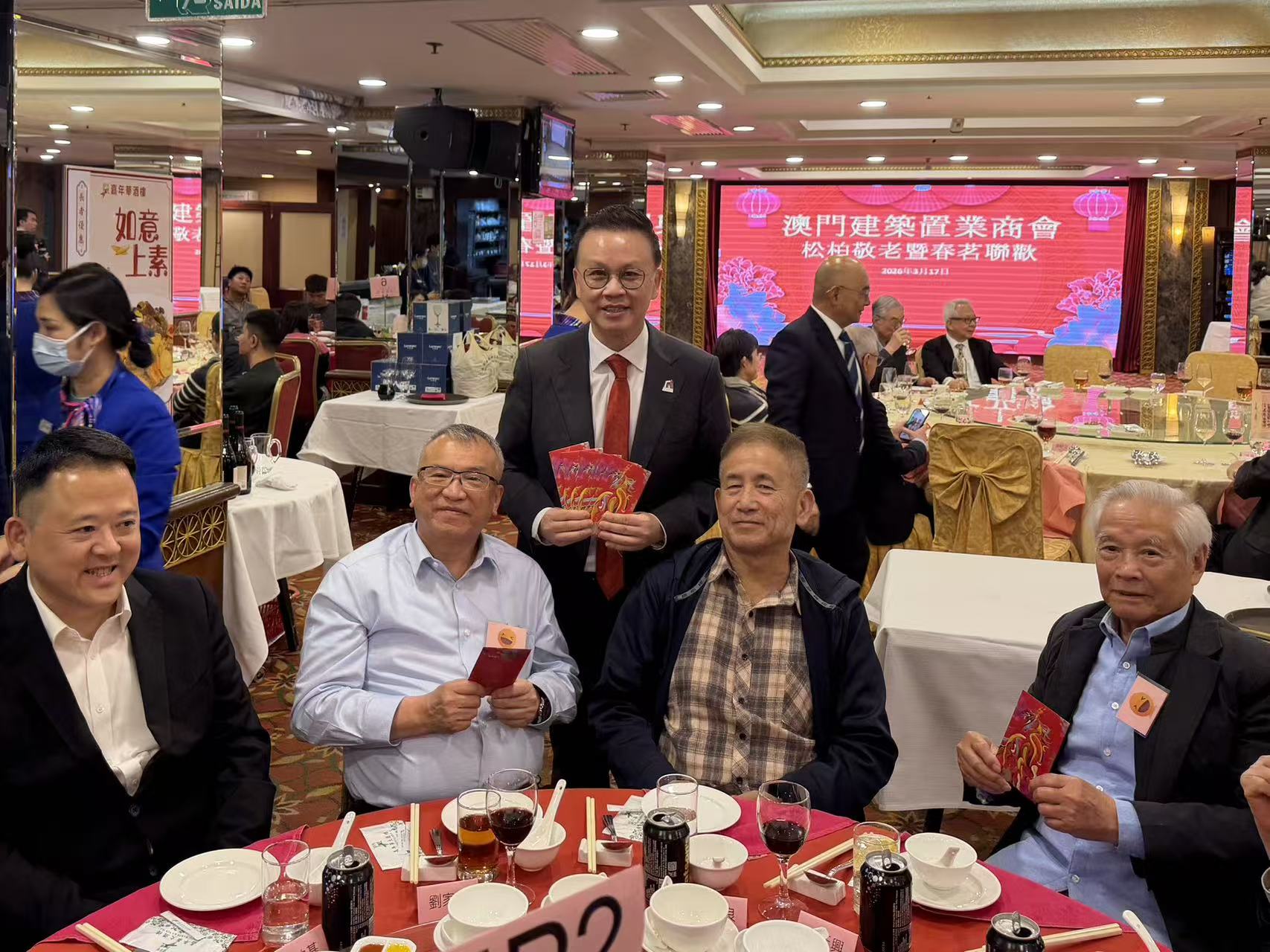 【即時新聞】澳門建築置業商會今晚七時半假嘉年華酒樓舉行松柏敬老春茗聯歡晚會,筵開十數席,席間並向長者派發利是,場面熱鬧。會長莫志偉稱,未來,澳門建築置業商會將貫徹落實習近平主席系列重要講話精神,主動對接國家「十五五」規劃,堅持和完善行政主導,高舉愛國愛澳旗幟,發揮團結業界作用,參與大灣區、合作區建設,為澳門經濟適度多元發展展現更大作為。