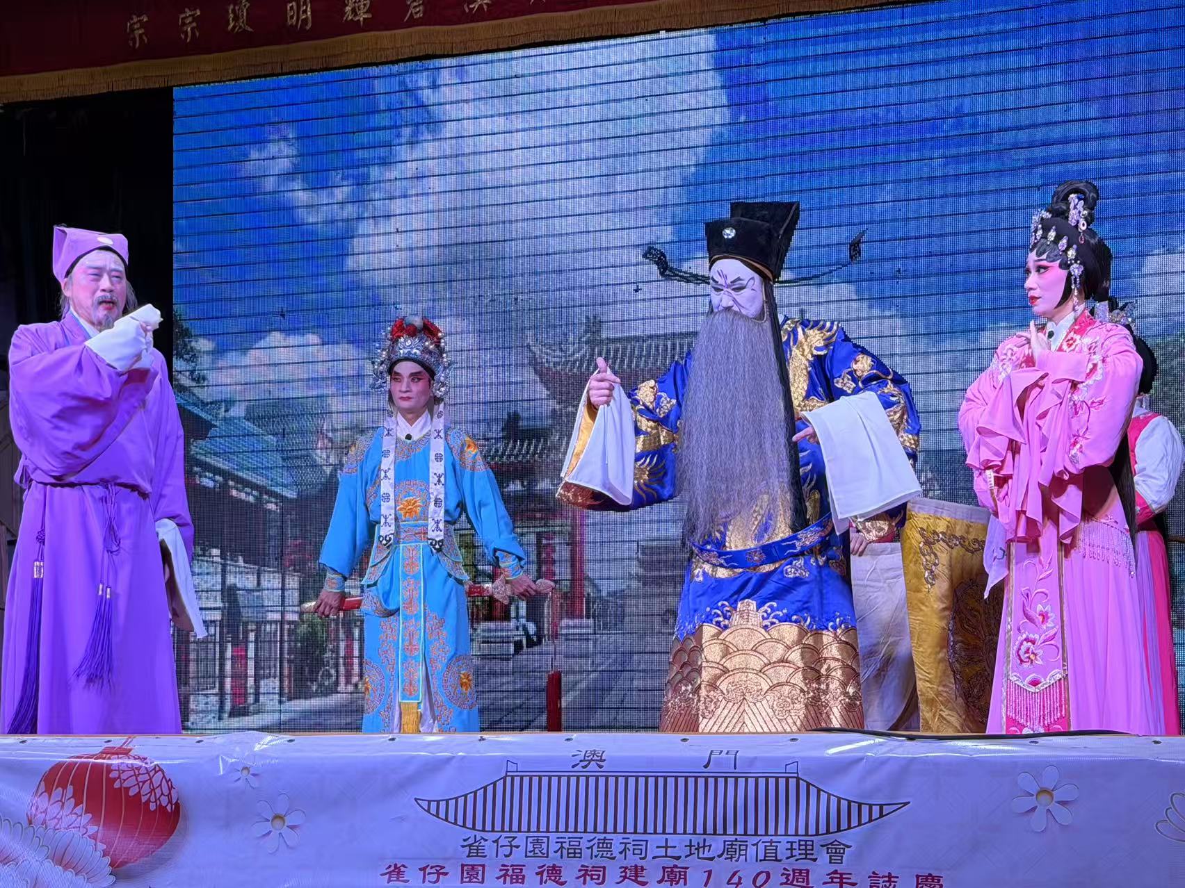 今晚七時半上演首場劇目《紫釵記》,現場座無虛席,氣氛熱鬧,不少市民到場感受傳統節慶和演出文化。雀仔園福德祠土地廟值理會理事長陳智威表示,首場劇目《紫釵記》由會內投票結合街坊意見選出,在澳門,神功戲與祭祀活動相融,此次活動面向街坊及長者群體,既為鄰里搭建互動平台,也給長者提供了夜間活動的機會,同時期望令更多年輕市民加深對土地信俗的認識,實現文化傳承。