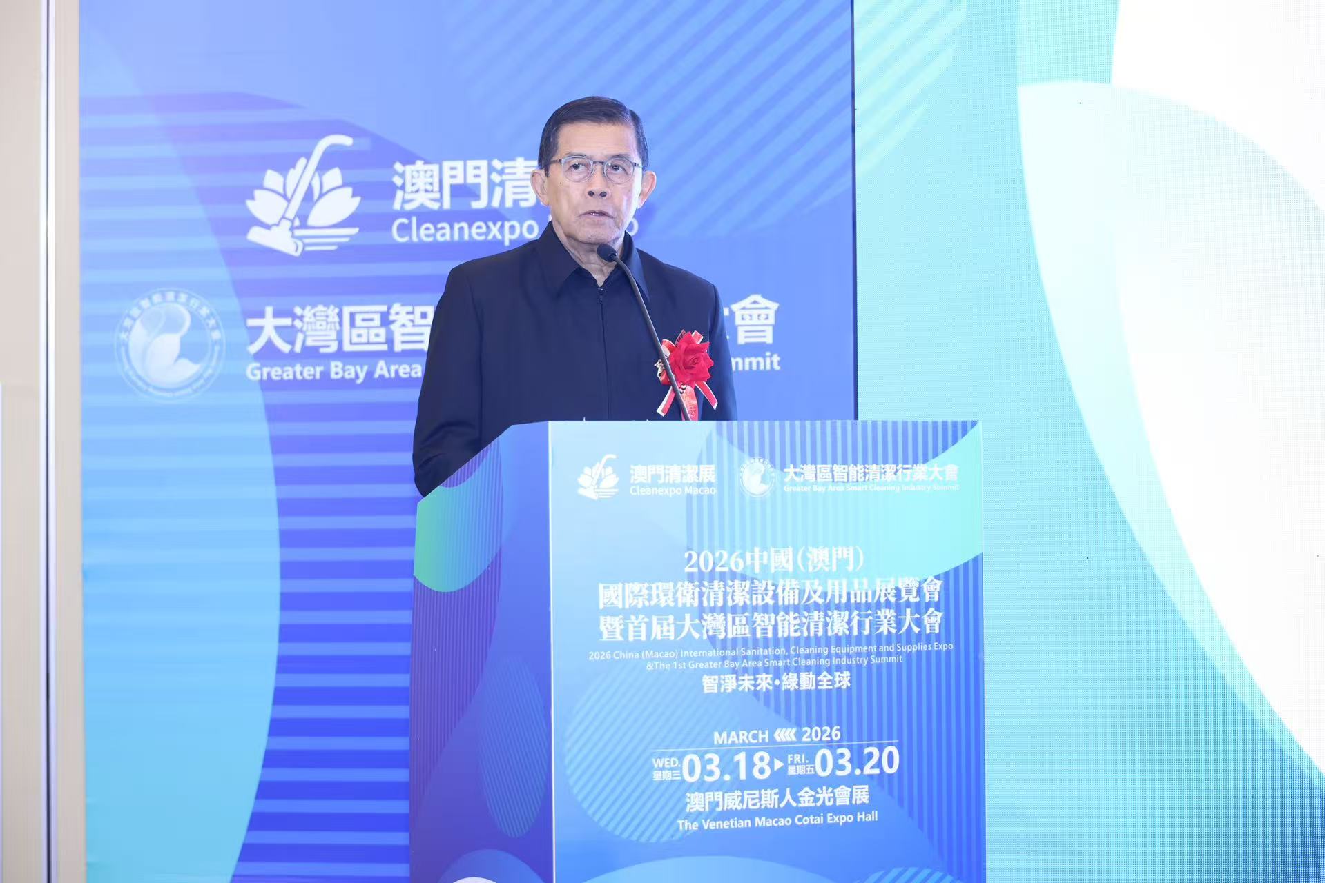 【即時新聞】由粵港澳大灣區洗滌商業聯合會指導、廣州加貝斯展覽有限公司主辦的2026中國(澳門)國際環衛、清潔設備及用品展覽會暨首屆大灣區智能清潔行業大會今日在威尼斯人金光會展正式拉開帷幕。本屆展會以「智淨未來·綠動全球」為主題,展覽面積逾10000平方米,參展陣容覆蓋廣泛,重點匯聚了智能清潔設備、清潔日化、環衛裝備、洗滌服務、奢侈品護理、室內空氣淨化等領域的優質企業,近百家海內外展商攜前沿產品與技術亮相。
