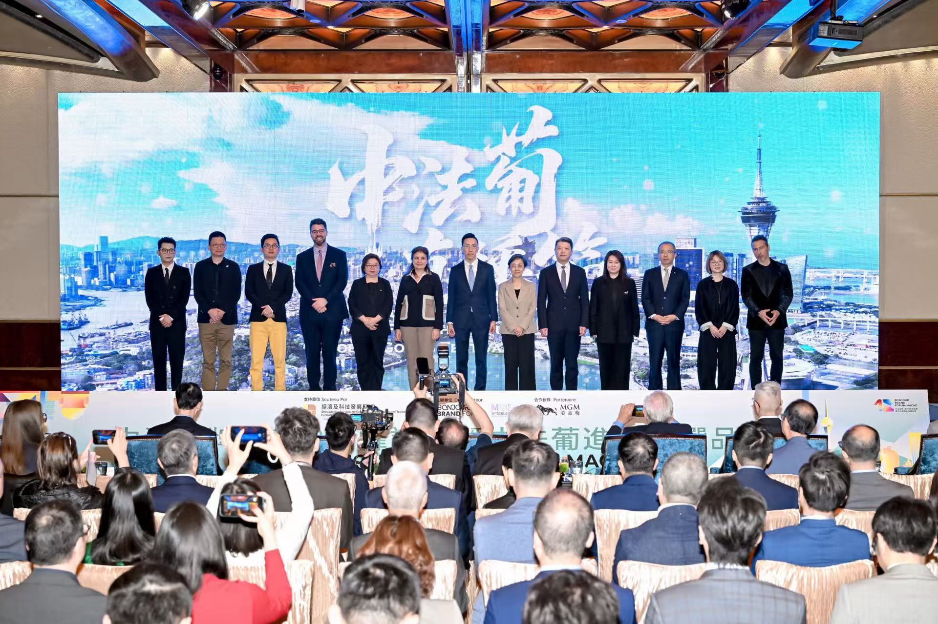 【即時新聞】由澳⾨直播協會及Bonjour Brand中法品牌⾼峰論壇組委會聯合主辦的首屆中法品牌(澳門)高峰論壇暨中法葡進出海選品會上午十時在澳門美高梅宴會廳舉行啟動儀式,行政長官岑浩輝,法國前總理、現任法國總統中國事務特別代表拉法蘭等出席主禮。