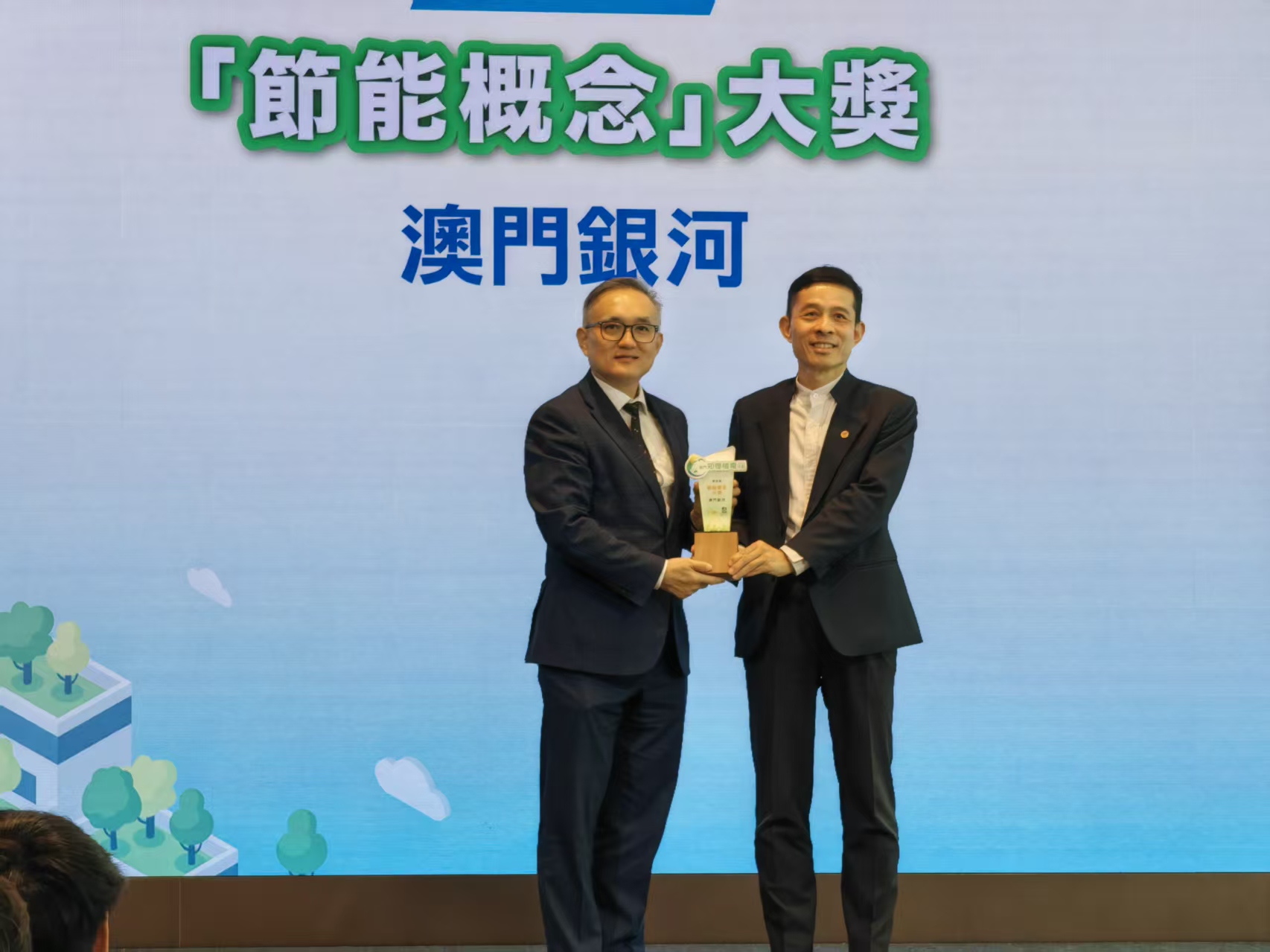 獲得「節能概念」大獎的「澳門銀河」在頒獎禮上分享其節能經驗。澳門銀河設施管理高級經理陳家希表示,澳門銀河長期推動可持續發展,致力建設綠色低碳城市,並秉持「設計先行、營運節能」理念。