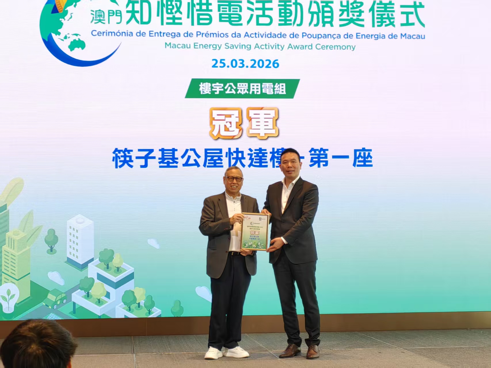 去年共有48間酒店及近500座樓宇參加《澳門知慳惜電活動》,以7月至10月連續4個發單月份的用電量與2024年同期相比,「樓宇公眾用電組冠軍—筷子基公屋快達樓第一座」於比賽期間的用電量減少達45.7%,「酒店A組冠軍—文華酒店」及「酒店B組冠軍—帝濠酒店」分別節省超過21%及18.4%的用電量。連同參與「5%節能行動」抽獎活動的参加者,所有參賽單位於去年比賽期間合力節省逾6百萬度電。
