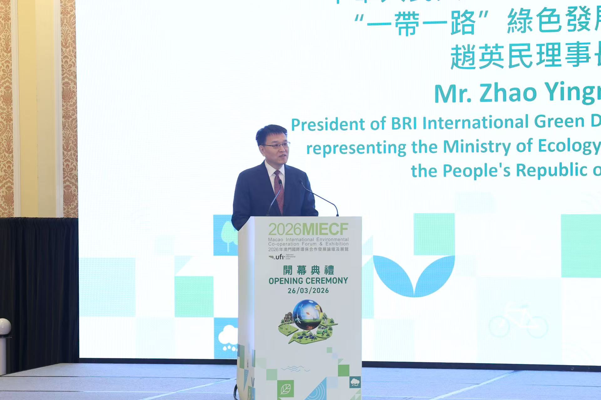 中華人民共和國生態環境部代表、“一帶一路”綠色發展國際聯盟理事長趙英民在主旨發言中提到,澳門在國家綠色轉型中具獨特優勢,他提出三點建議:一是深化澳門綠色低碳轉型,對接國家與澳門規劃,利用國際環保論壇推動技術轉移與產業合作,助力碳達峰目標;二是合力建設粵港澳美麗大灣區,落實相關生態規劃,加強固废處置、海洋生態保護、大氣污染防治等領域合作,提升澳門環境質量;三是推動綠色發展國際合作,發揮澳門窗口作用,共建區域綠色發展數據中心,吸引更多主體參與“一帶一路”綠色聯盟,促進全球可持續發展。