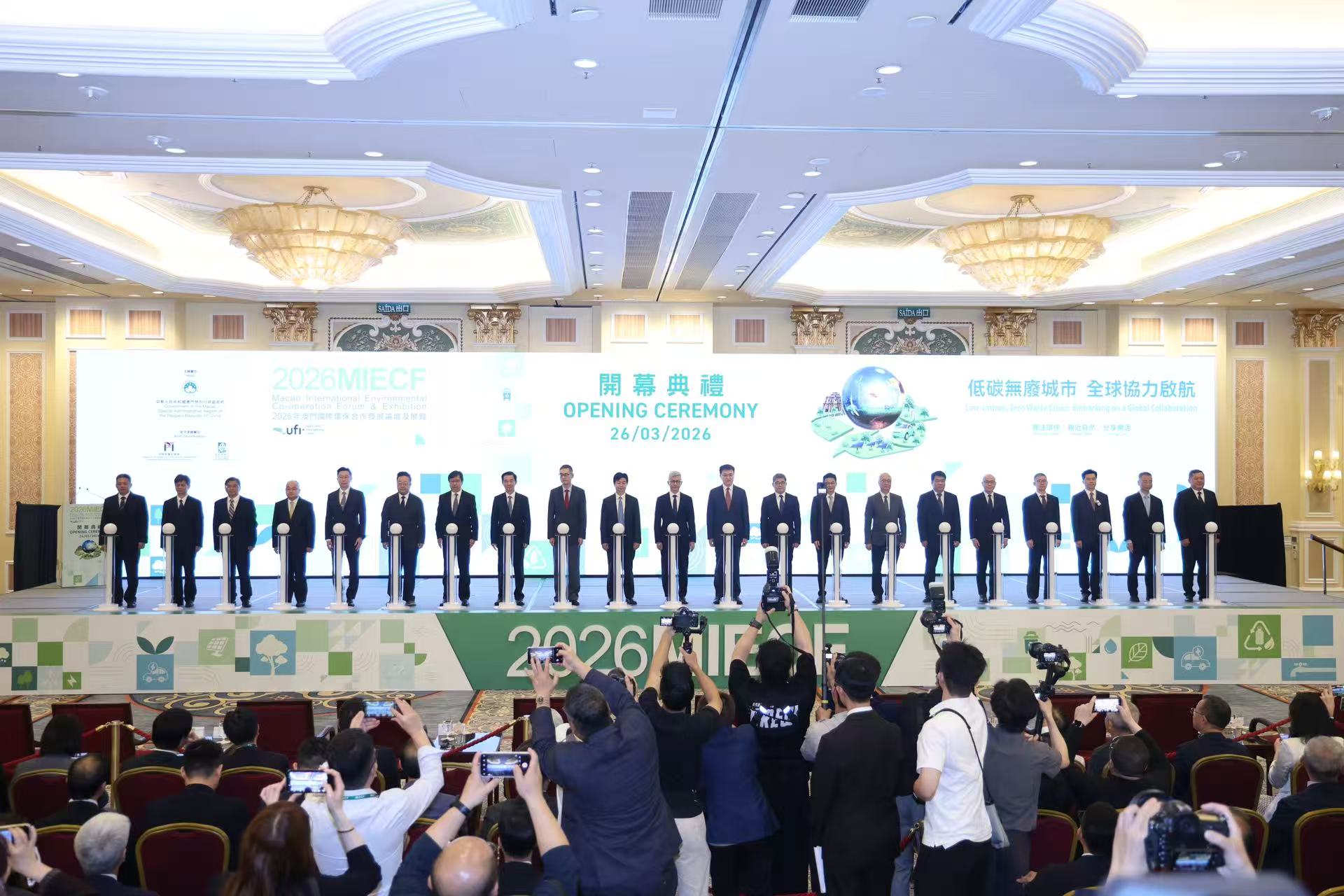 【即時新聞】“2026年澳門國際環保合作發展論壇及展覽”(MIECF)上午十時半假威尼斯人金光會展開幕,一連三天的盛會以“低碳無廢城市 全球協力啟航”為主題,匯聚30個國家及地區的政府代表、知名環保專家學者、世界500強企業、國際環保組織以及環保科技領軍企業等參展參會。大會更安排近30場專題活動,旨在推動國際綠色合作與產業對接,拓展澳門在區域及國際環保領域的角色與影響力。