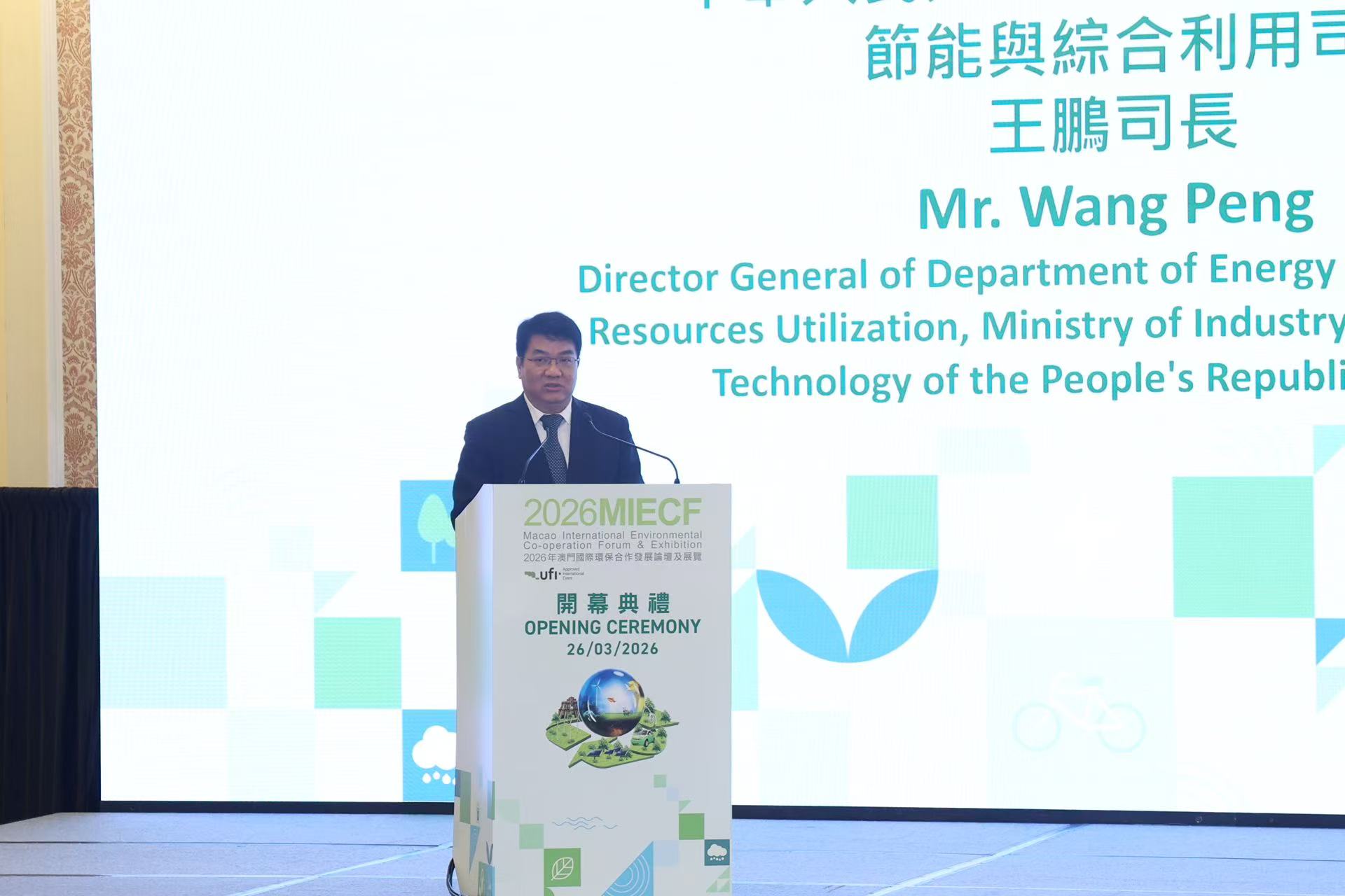 中華人民共和國工業和信息化部節能與綜合利用司司長王鵬表示,本屆MIECF以“低碳無廢城市 全球協力啟航”為主題,搭建了良好的交流平台,彰顯了澳門特區政府推動綠色低碳轉型發展的決心,對粵港澳大灣區及更多地區具有重要的借鑒和助力意義。“十四五”以來,中國持續推進工業綠色發展,完善綠色製造體系,環保裝備製造業年產值即將突破萬億元。展望“十五五”,將堅持智能化、綠色化、融合化的方向,以培育壯大綠色生產力為主線,實施工業領域碳達峰行動,加快產業結構和用能結構協同轉型,加力推進工業的節能降碳,擴大工業領域的綠電應用,構建工業領域的碳排放雙控制度體系。期望與各方一道加強在綠色技術、產業、金融、人才等方面的務實合作,共享發展機遇,同走綠色發展之路。