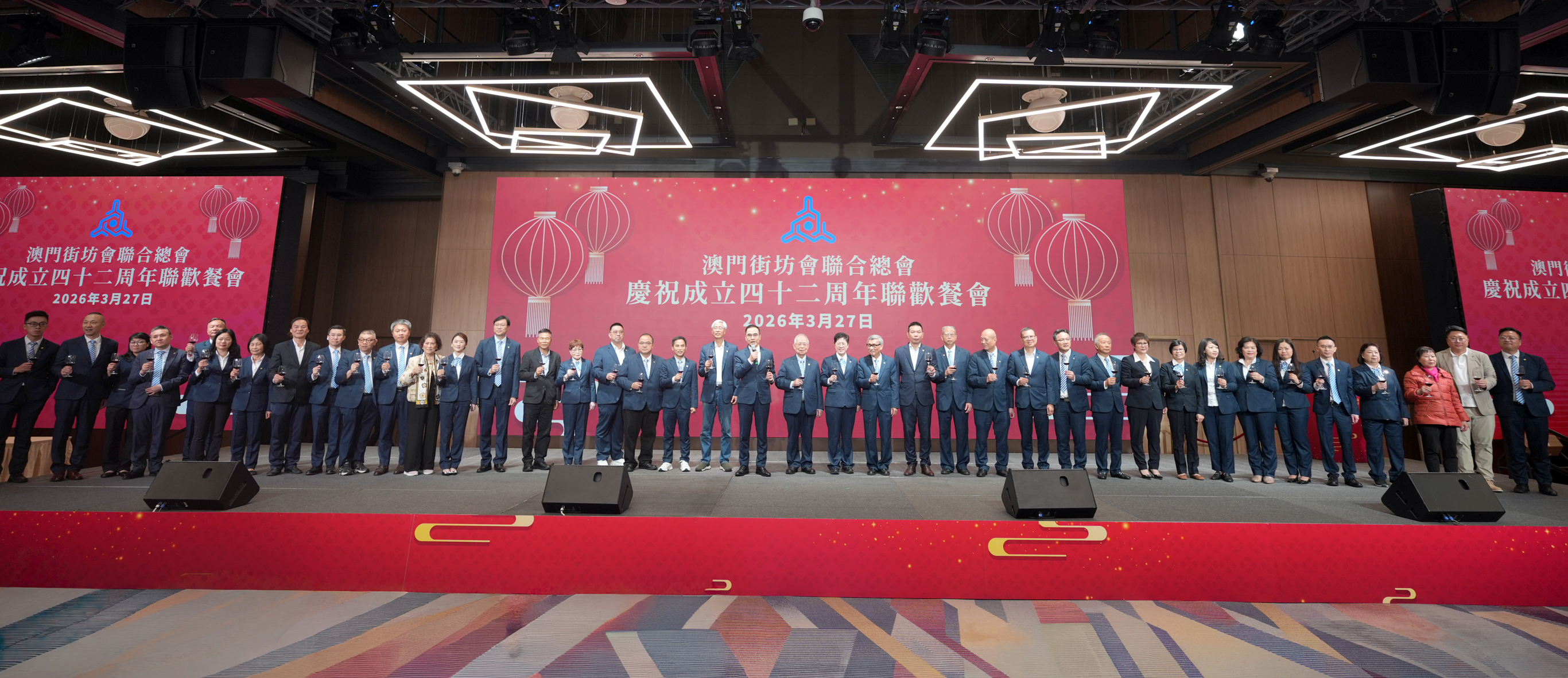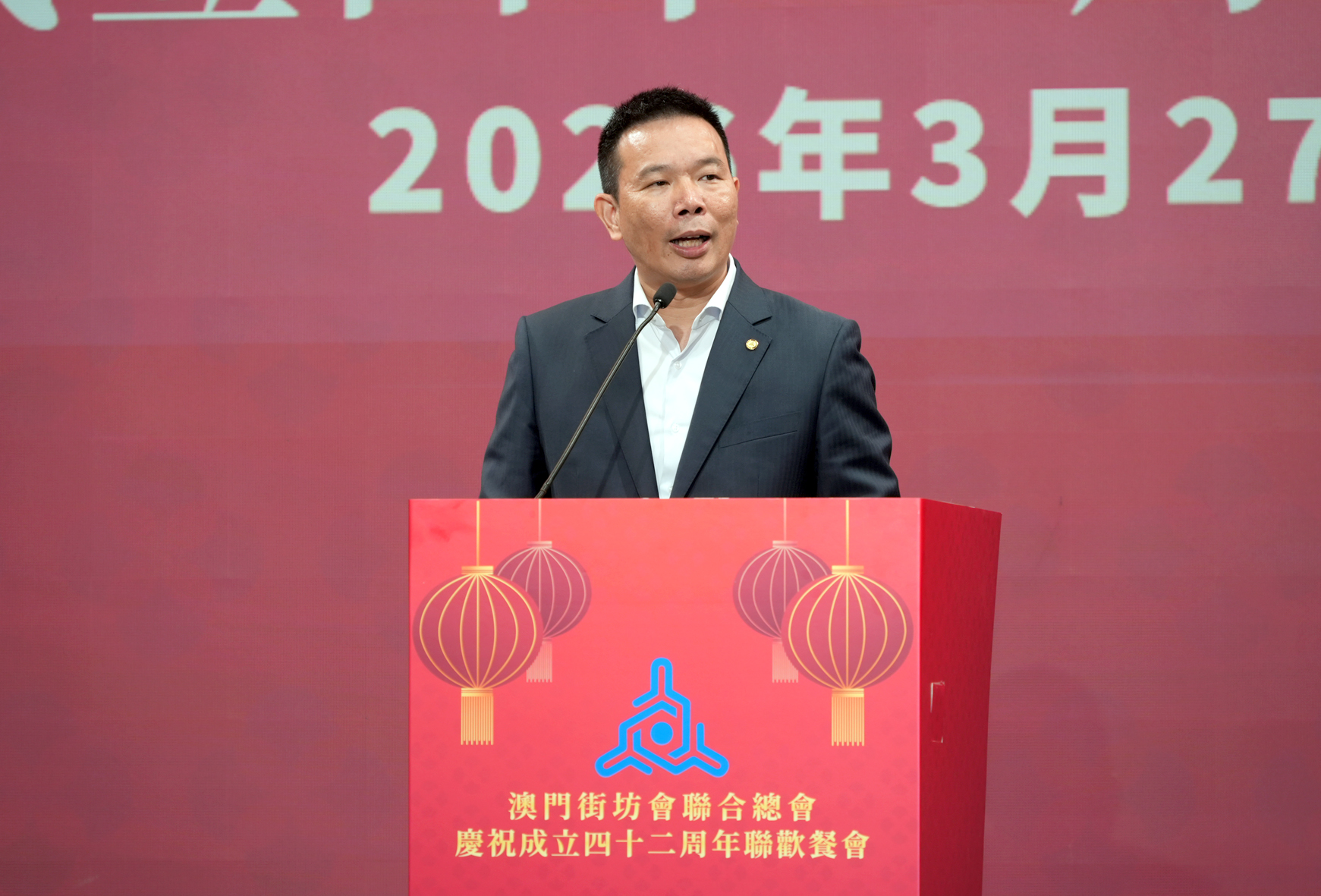 【即時新聞】街坊總會成立四十二周年聯歡餐會27日晚假旅遊塔宴會廳舉行,理事長陳家良表示,街坊總會成立42年來,始終秉承「團結坊眾、參與社會、關注民生、服務社群、共建特區」的辦會方針,用實際行動支持和配合特區政府依法施政,全心全意為廣大居民辦實事、謀福祉。積極開拓創新,優化和拓展本地及大灣區社會服務。