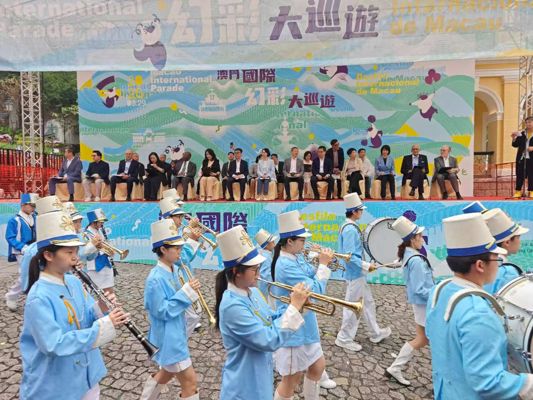 【即時新聞】由文化局、澳門永利渡假村、澳娛綜合度假股份有限公司、金沙中國有限公司、美高梅及銀河娛樂集團聯合主辦的「2026澳門國際幻彩大巡遊」下午3時啟幕,一眾巡遊隊伍隨後並於大三巴牌坊出發,吸引眾多市民及旅客駐足欣賞,現場氣氛熱鬧歡騰。