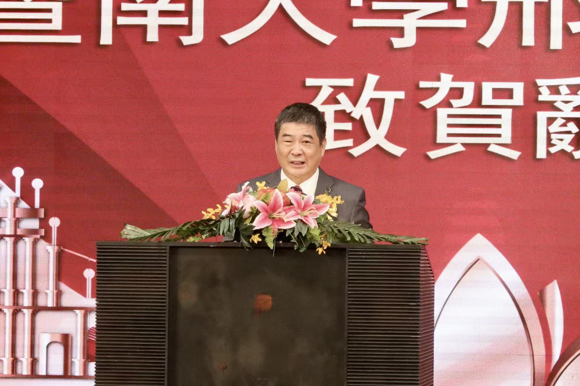 邢鋒致賀詞時祝賀新一屆理監事會當選,並指出暨大建校以來為全球培養逾50萬人才,其中澳門校友逾三萬名,是愛國愛澳力量的重要組成部分。他肯定澳門校友會40年來的深耕細作,期望新一屆理監事會續寫發展新篇。同時,他透露為更高質量服務澳門發展,學校將啟動暨南大學澳門高等研究院建設,主要承載三大使命:一是依託澳門“一國兩制”優勢,打造海外高端人才進入內地的中轉站;二是推動中醫藥等優勢學科成果轉化落地,助力大灣區產業創新升級;三是深化對澳教育合作,定向培養高層次人才。他期望各界支持研究院早日落地,為澳門注入新的暨南力量。