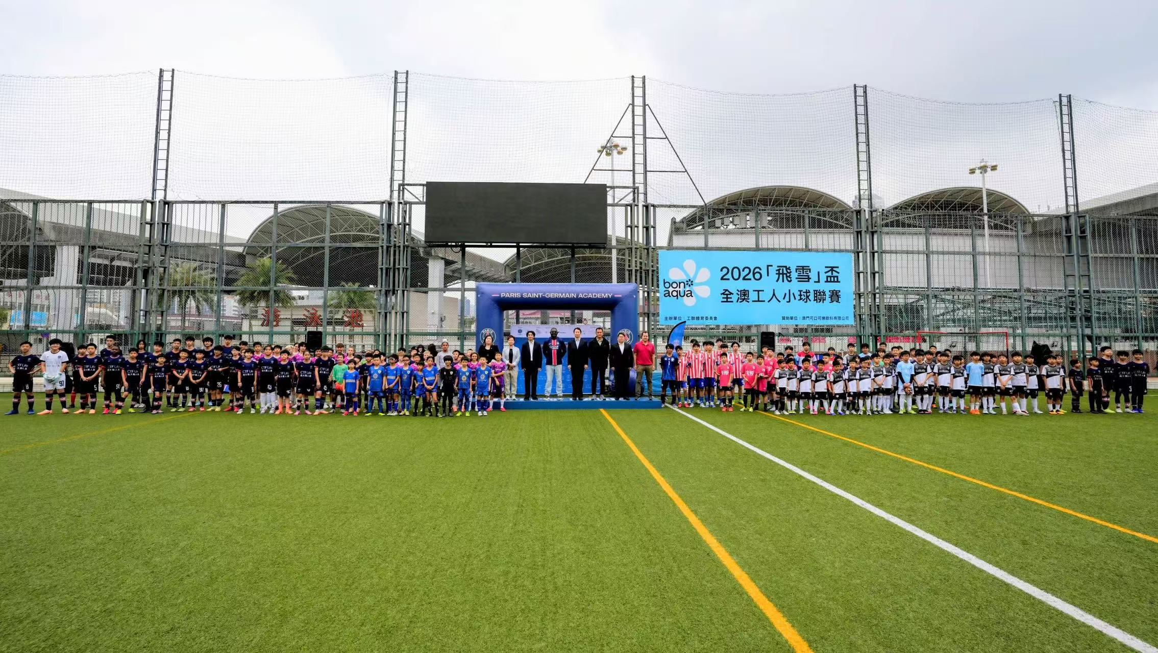 【即時新聞】「巴黎聖日耳門青少年粵港澳大灣區錦標賽 2026」今日上午於澳門工人體育場舉行開球禮。賽事為期兩天,吸引來自區內20多支青少年足球隊伍參賽,數百名年輕球員將展開激烈角逐。旨在透過足球推動青少年發展,為年輕球員提供交流的平台,讓他們在運動中成長並建立自信。