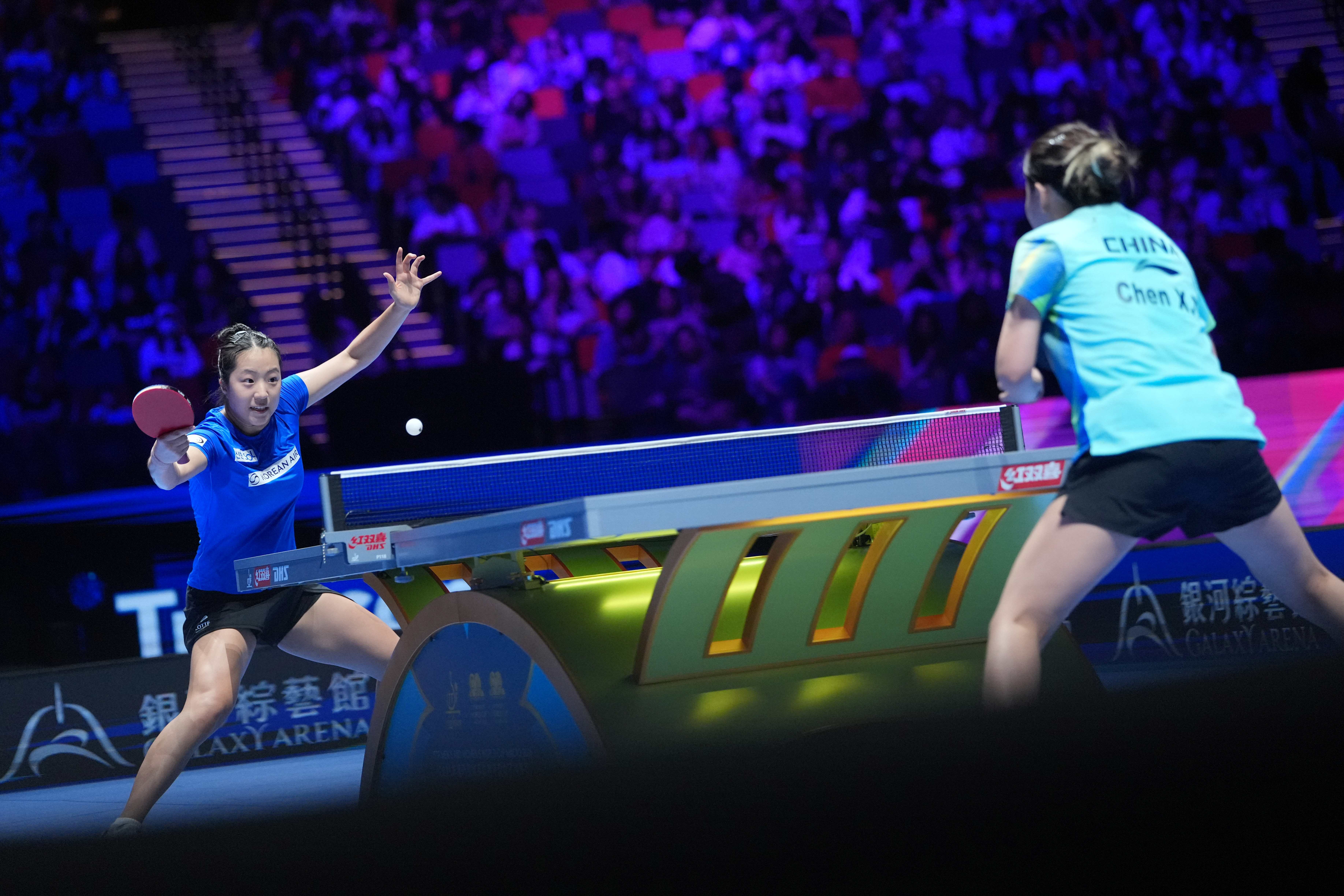 女子世界盃方面,中國球手兵分四路出擊。衛冕冠軍孫穎莎面對狀態大勇的埃及漢娜.高達,雙方比分拉鋸不下,多次打至 “刁時”,孫穎莎更曾落後局數2比3,最終頂住壓力連取兩局,以局數4比3(13比11、11比8、14比16、5比11、10比12、11比3、13比11)成功守住四強席位。而王曼昱對決日本橋本帆乃香,雙方互有領先,各取兩局,王曼昱最終以局數4比2(8比11、11比8、13比11、8比11、11比5、11比9)晉級四強。另外,陳幸同迎戰韓國申裕斌,以8比11先失首局,接著以11比9追回一局,惜未能扭轉局勢,終以局數1比4(8比11、11比9、10比12、0比11、9比11)不敵申裕斌,止步八強。至於王藝迪則未能發揮全部實力,以局數0比4(7比11、9比11、9比11、8比11)不敵德國沙賓.溫特,無緣四強。