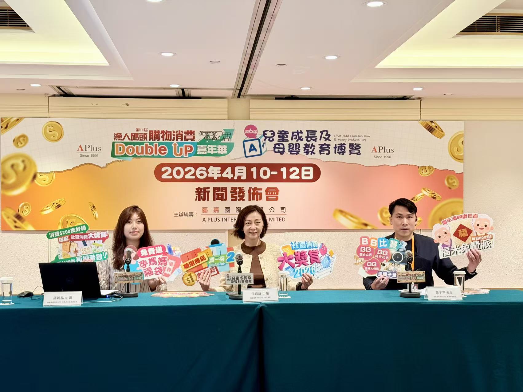 【即時新聞】由藝嘉國際有限公司主辦的「第11屆漁人碼頭購物消費Double Up嘉年華」及「第6屆A+兒童成長及母嬰教育博覽」將於明日起至12日在澳門漁人碼頭會議展覽中心舉行。本次雙展以「親子童樂・春日消費新體驗」為核心,匯聚百家本地、香港及台灣的優質展商,設立超過150個展位,提供從兒童教育、母嬰護理到家居生活購物的一站式家庭體驗。展會首日恰逢特區政府「2026社區消費大獎賞」活動啟動,市民於展場消費可同步享受政府電子優惠,疊加展會獨家促銷,共享雙重消費利好。