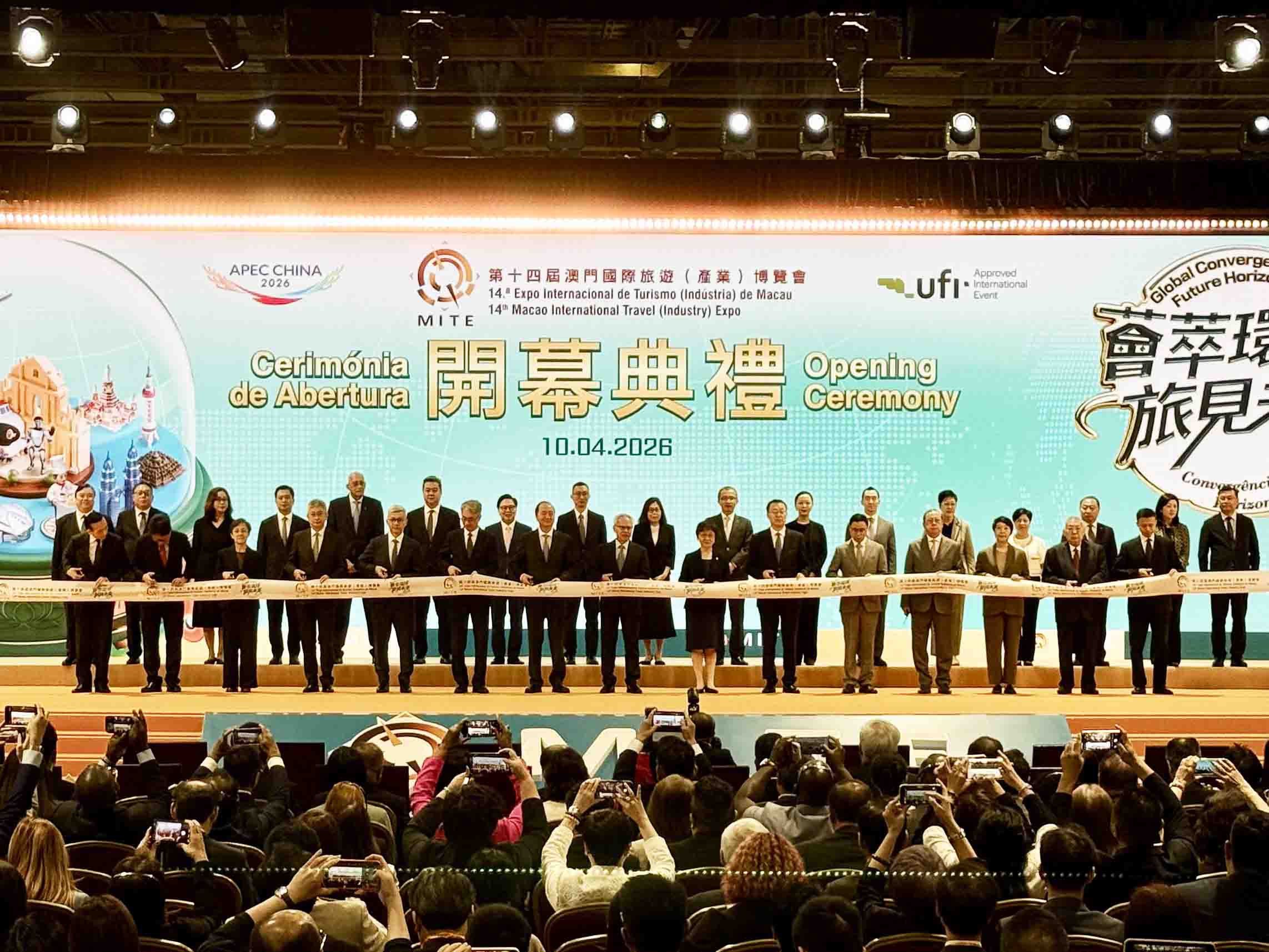【即時新聞】由旅遊局主辦的第十四屆澳門國際旅遊(產業)博覽會(簡稱“旅博會”)於今日開幕,以“薈萃環球,旅見未來”為主題,傾力打造 5 大核心亮點,吸引來自59 個國家及地區、超過 700 家旅遊相關企業及官方機構参展以及超過600位海內外特邀買家共襄澳門年度旅遊會展盛事,引領旅遊產業發展嶄新趨勢,為推動本澳經濟適度多元與提升旅遊產業競爭力注入新動能。