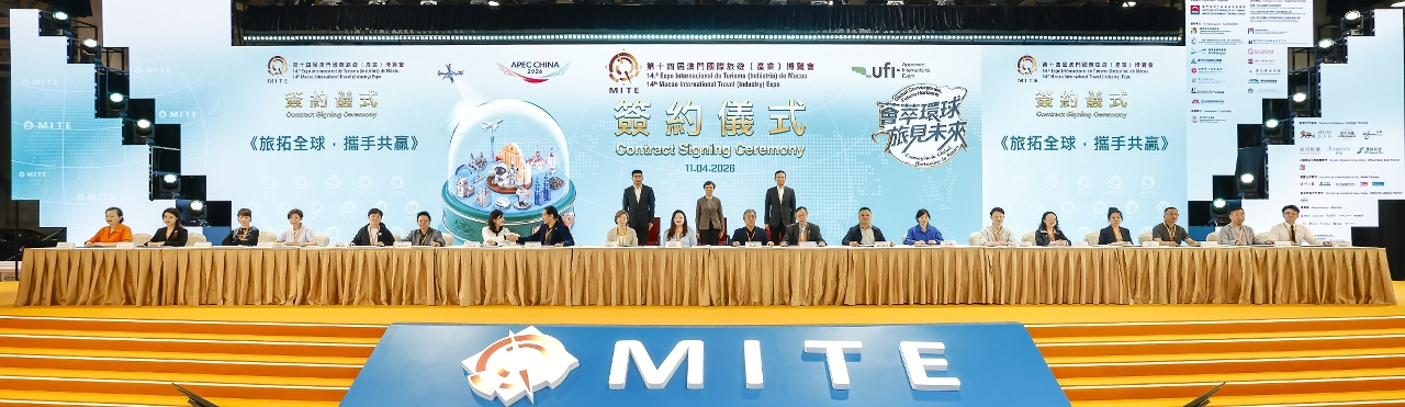 近120個文旅相關機構及社團於昨(11日)在旅博會場館內舉行簽約儀式,推進澳門與來自不同國家及地區業界之間的業務合作。現場共簽訂60份合作項目,涵蓋APEC賦能、旅拓全球、數智旅業、一展兩地、醫旅融合和絲路建設6個組別。旅遊局局長文綺華、澳門中聯辦經濟部副部長楊全州及澳門旅行社協會會長劉雅煌共同見證簽約儀式。