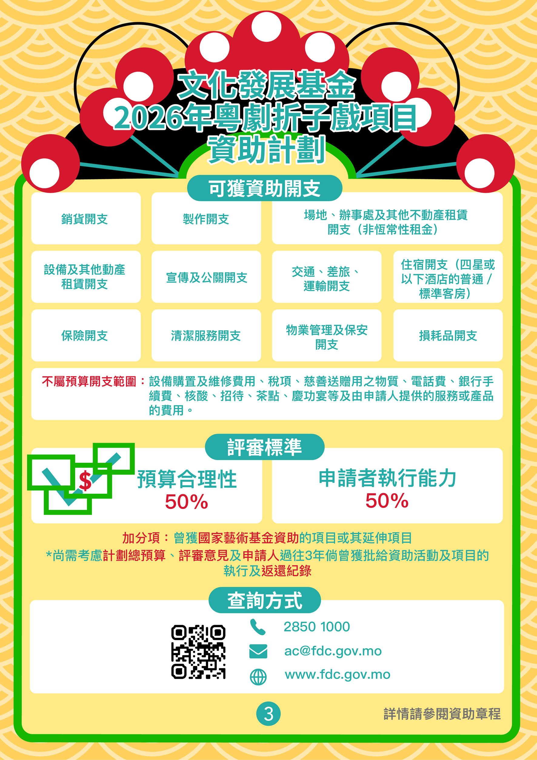 如對資助申請有任何疑問,請致電2850 1000或電郵ac@fdc.gov.mo向資助管理處查詢。