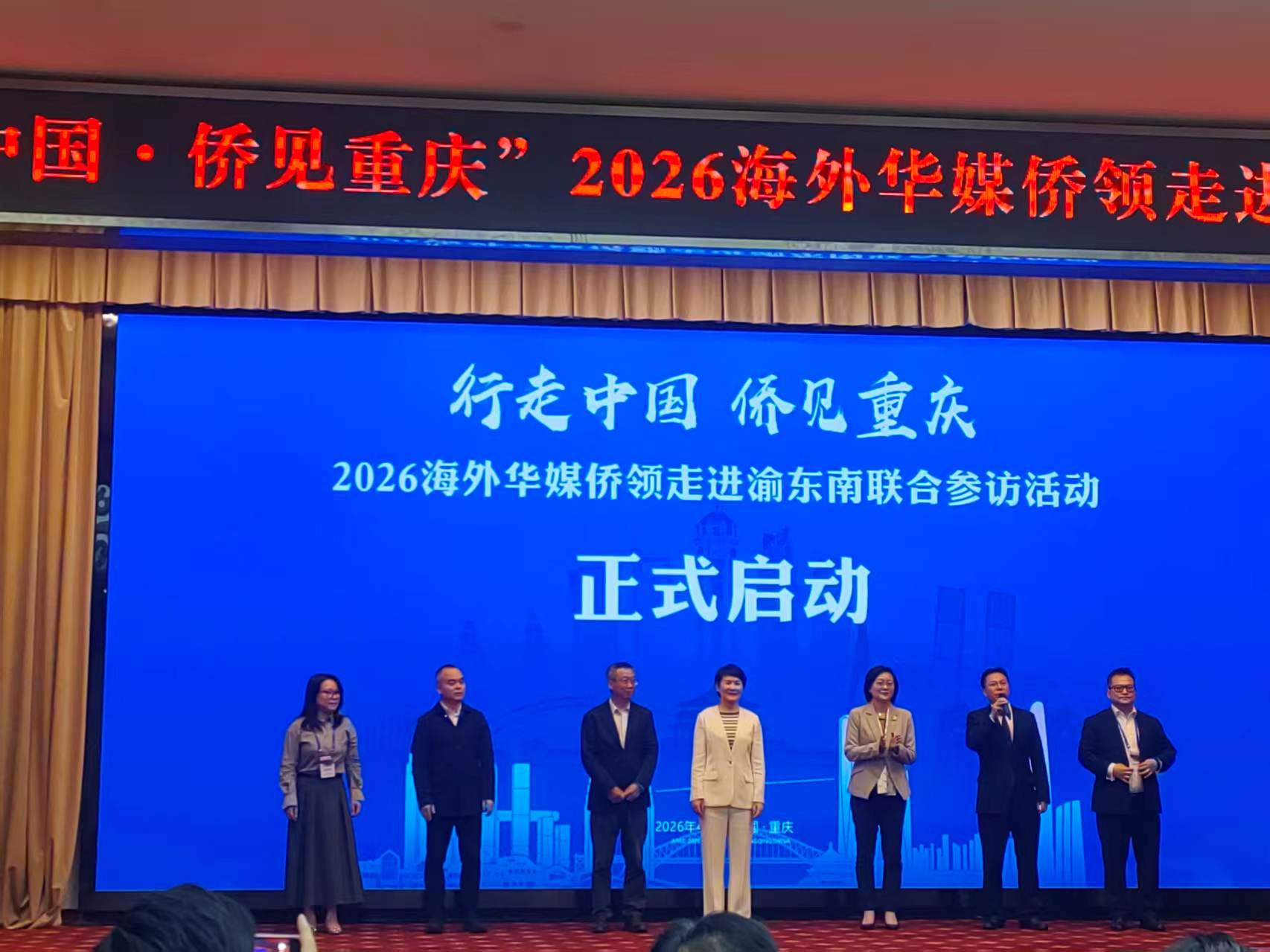 啟動儀式下午二時三十分在重慶市工商聯大廈舉行,由重慶市政府僑務辦主任王建國主持,重慶市政府新聞辦主任張瓊,重慶市僑聯黨組書記、主席孟衛紅,中國新聞社副總編輯陶光雄,中國新聞社重慶分社社長胡忠義等出席。