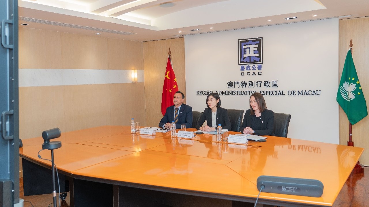 歐陽湘在視像會議上表示,在這喜慶日子,澳門特別行政區廉政公署很高興能參與其中,安排各項紀念活動,包括在公署網頁和電台發表賀辭,以及在網頁發布關於協會宗旨、背景和活動等資訊,誠邀公眾一起分享。參與視像會議的還有廉政公署顧問Vasco Lopes和行政申訴局行政申訴廳廳長譚旖巒。