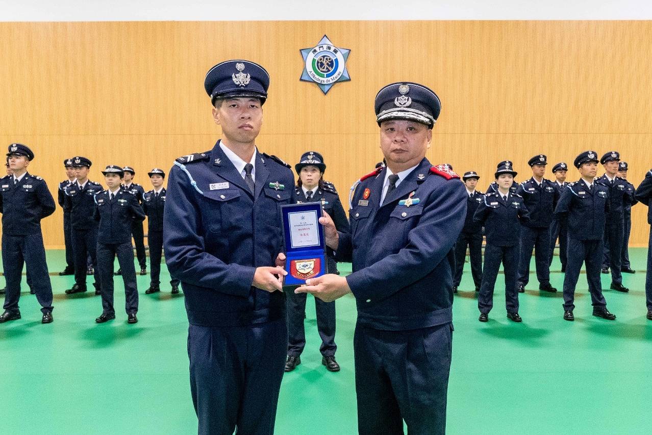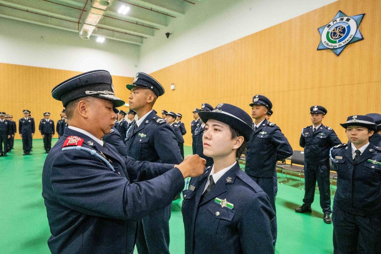 隨後,李煜輝、助理關長葉華釗及吳嘉慧為新入職關員佩戴肩章,並向是次培訓課程獲得總成績優異獎的林思庄頒發了獎項。就職儀式結束後,畢業學員隨即被分派至海關各單位執勤,正式履行職責。