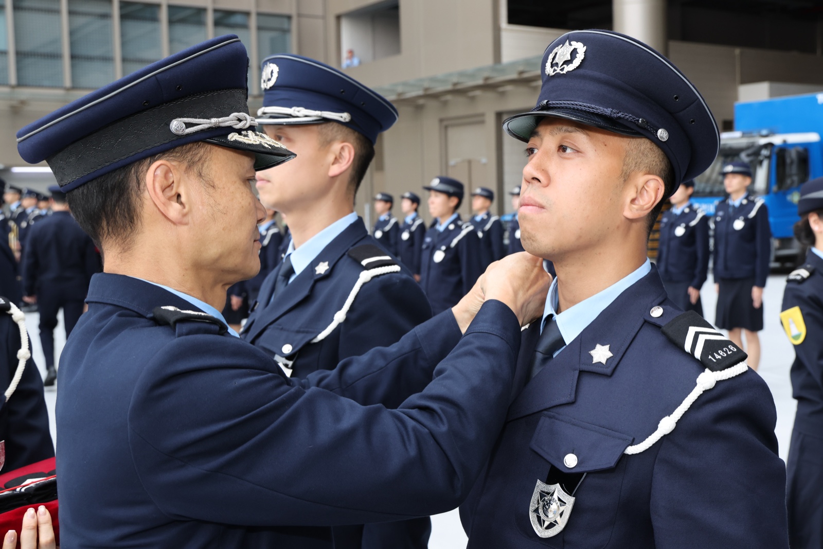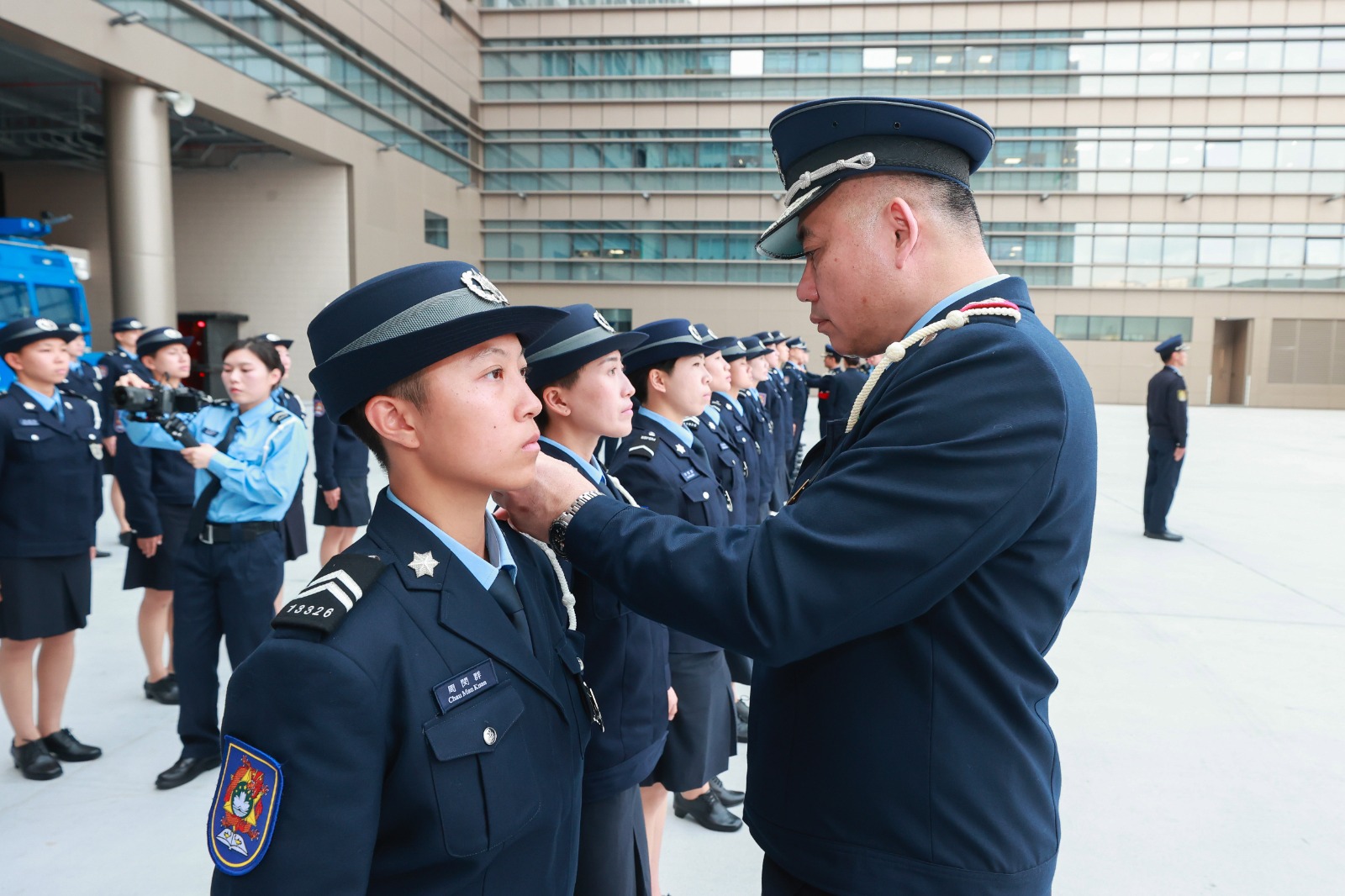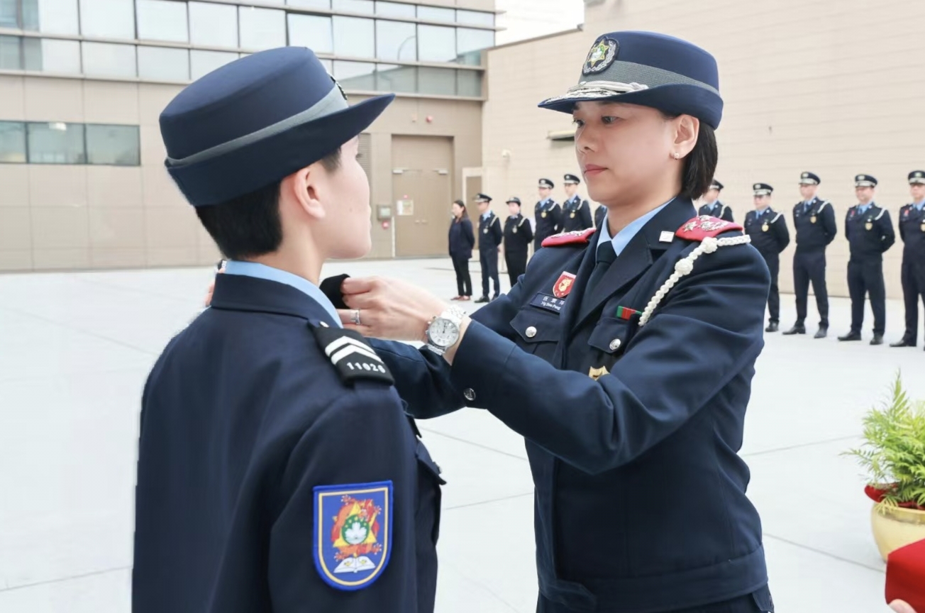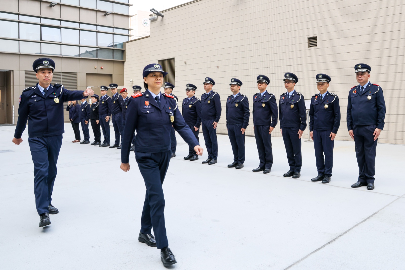 【即時新聞】治安警察局在治安警察局總部大樓為新入職警員舉行就職儀式,儀式由治安警察局伍素萍代局長主持,梁慶康副局長、鄭俊禧代副局長及各部門主管一同出席為新警員戴上肩章。