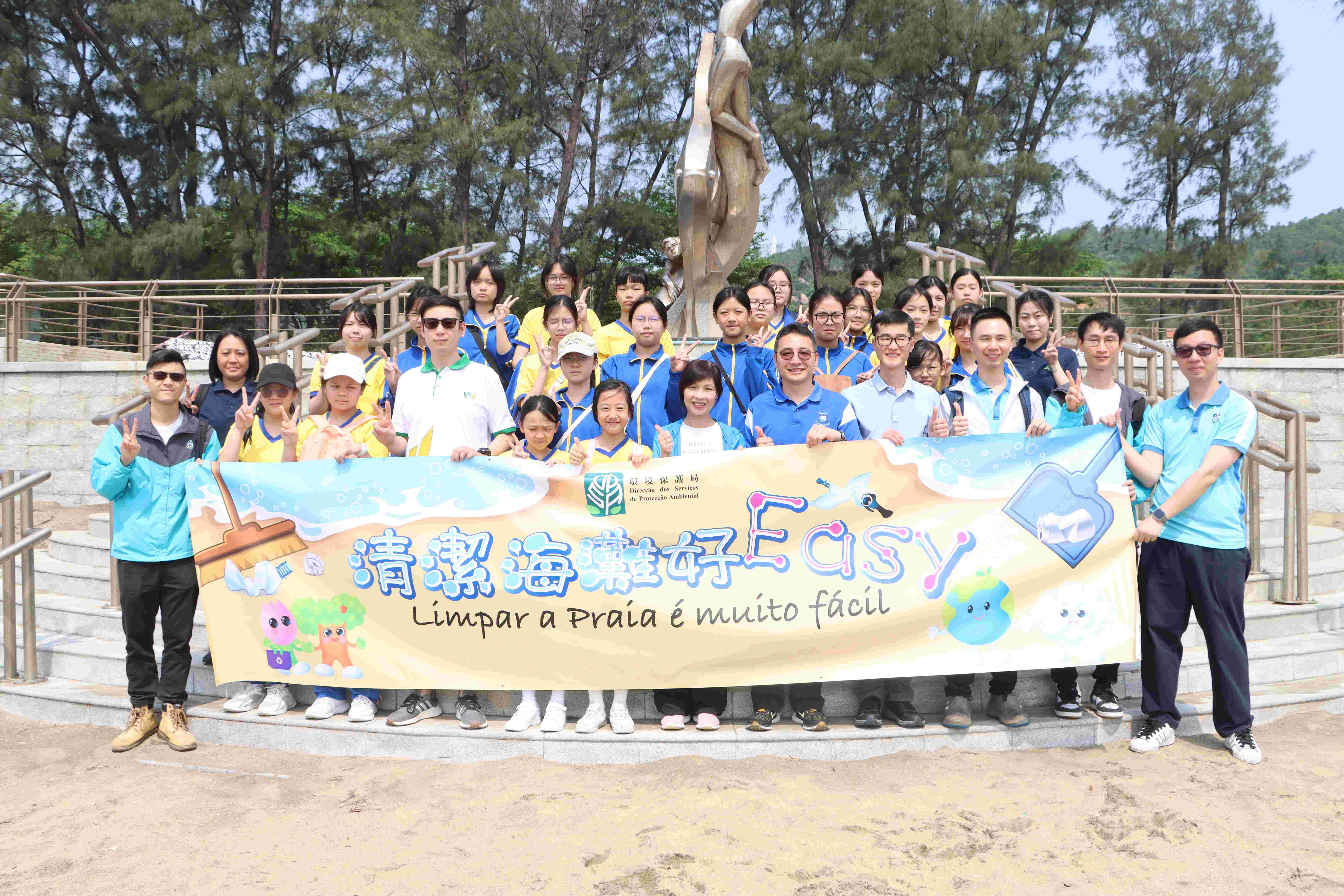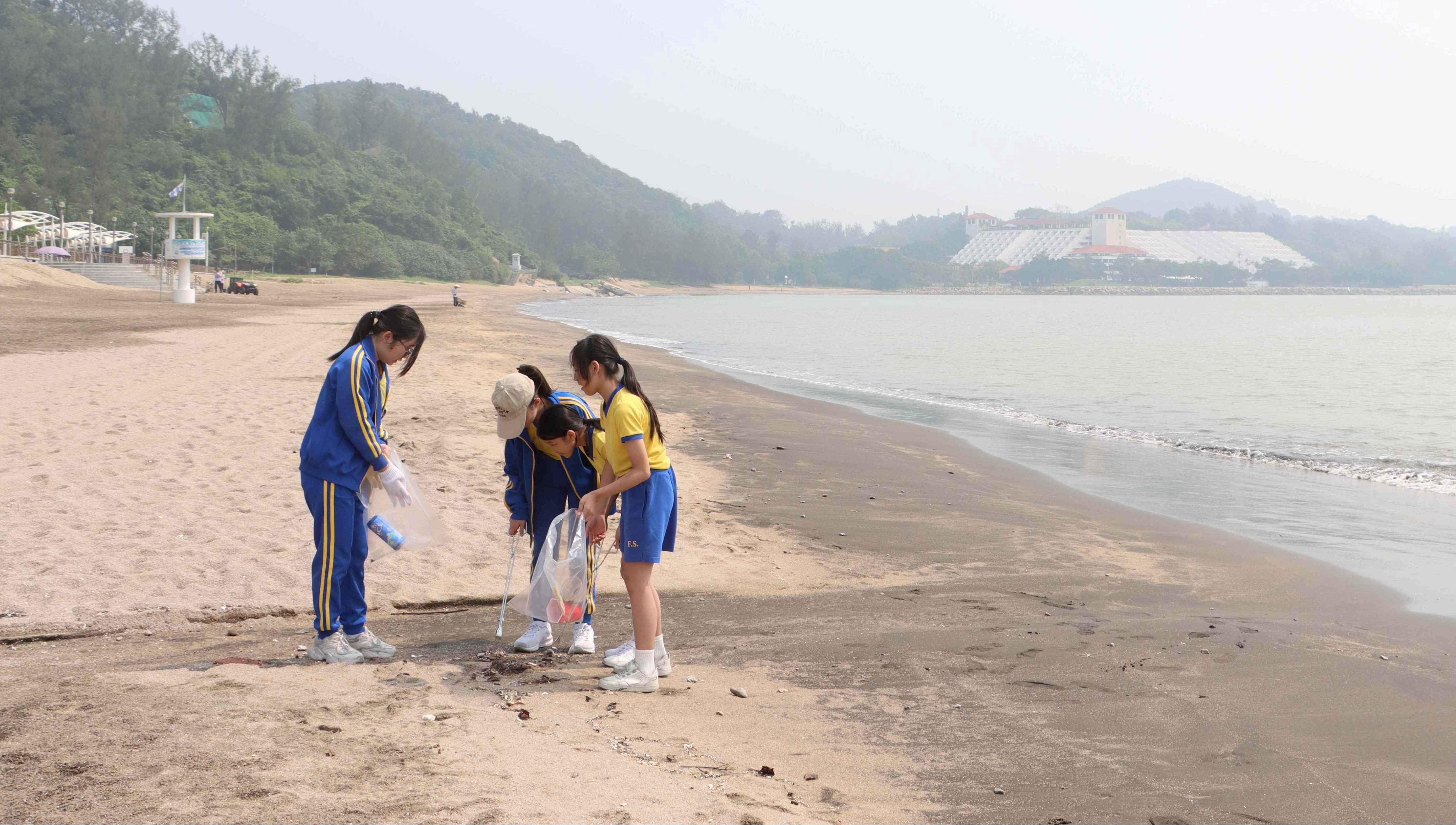 環境保護局聯同海事及水務局、市政署於黑沙海灘舉辦“清潔海灘好Easy”活動,邀請了化地瑪聖母女子學校二十多位師生參與,於今日(4月18日)到黑沙海灘身體力行清理垃圾,藉以喚起大眾愛護環境的意識,帶動社會各界積極實踐各種環保減碳行為。活動上,環保局人員介紹乾淨回收知識,包括三色資源垃圾的正確分類、三色資源垃圾的後續處理以及環保局設立的社區資源回收網絡等。