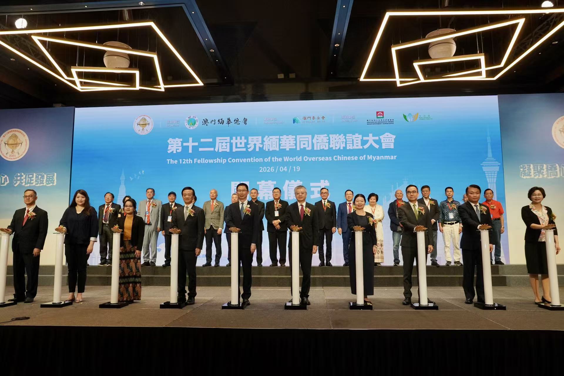 【即時新聞】由澳門緬華總會主辦的第十二屆世界緬華同僑聯誼大會今早在澳門旅遊塔開幕。本屆大會以「凝聚僑心,共促發展」為主題,旨在弘揚愛國愛鄉優良傳統、維護中華民族大團結,助力全球緬華同僑深入了解及融入粵港澳大灣區發展,積極推動「一帶一路」建設全方位開展,並在經貿、文化、科技等高新領域為國家發展與建設尋找互利共贏的新機遇。