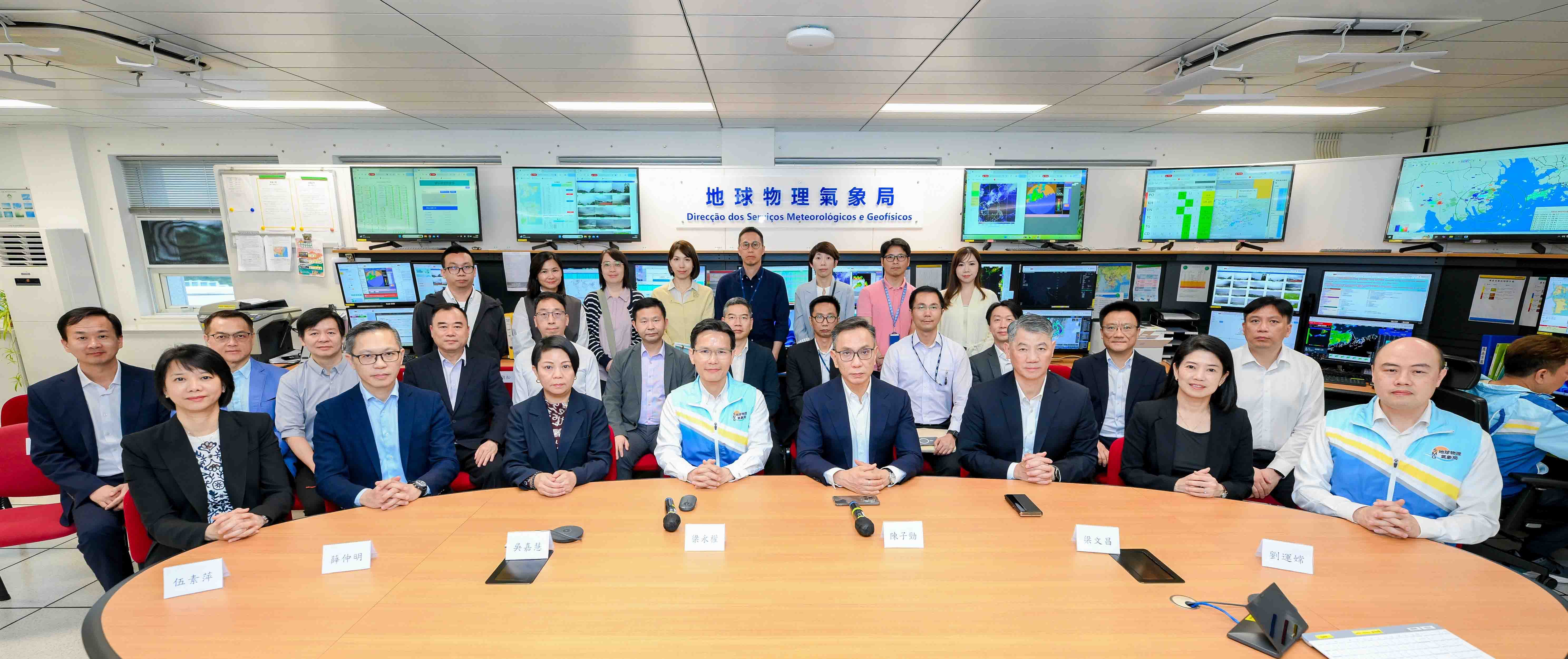 在交流會上,梁永權局長介紹影響澳門的熱帶氣旋及風暴潮特徵,包括相關路徑規律、水浸災害分布及關鍵影響因素等,並分享世界氣象組織(WMO)災害風險管理概念,期望透過借鑒國際經驗,提升本澳氣象災害的整體應對能力。與會者實地參觀預警及預報中心、百年氣象站及輻射監測設備,以及直播室,深入了解日常及惡劣天氣下氣象局的運作模式,以及氣象數據收集與應急支援的安排。