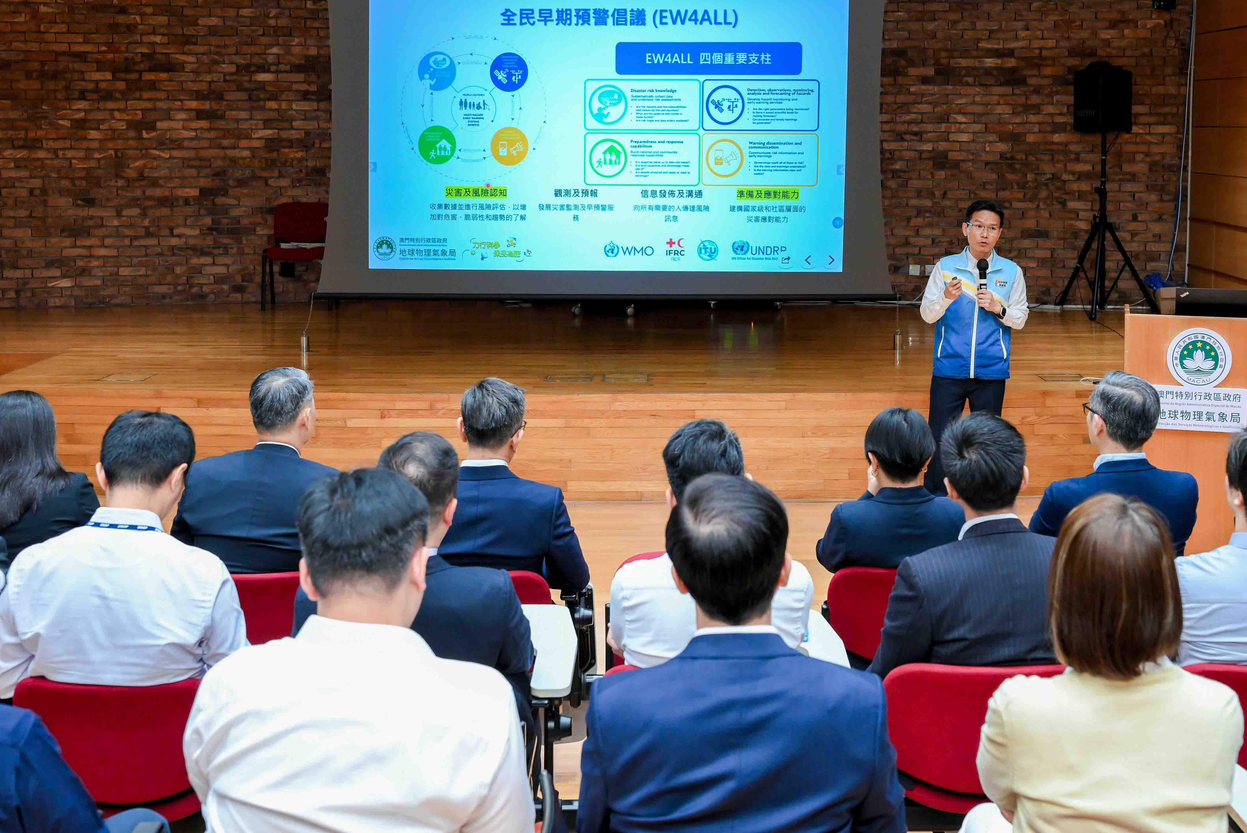 【即時新聞】因應氣候變化導致熱帶氣旋及風暴潮對本澳的影響在近年愈趨頻繁及極端化,地球物理氣象局於4月17日舉辦領導及主管專場《熱帶氣旋及風暴潮交流會》。交流會邀請了保安司司長、聯合行動指揮官陳子勁、警察總局局長梁文昌,各個民防架構成員領導及主管出席,以促進構建與民防架構成員的共通語言,以期助力持續優化民防架構的聯防聯控機制,從而更好地攜手縮小早期預警差距及降低災害帶來的影響,共同實踐聯合國(United Nations)“全民早期預警(Early Warnings for All)”的倡議。