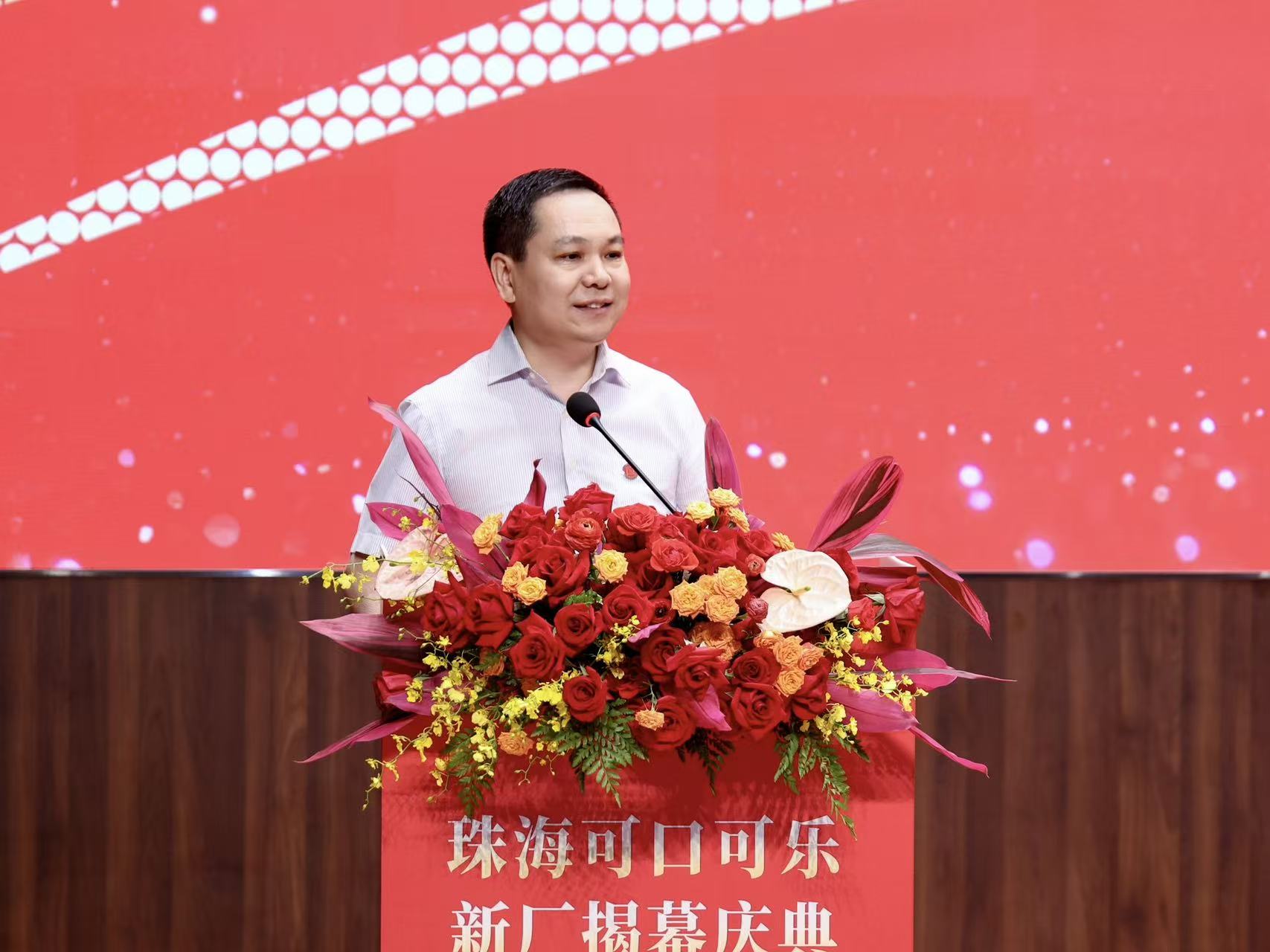 新廠揭幕慶典上午10時半在珠海金灣區紅旗鎮金麥路117號舉行,澳門經濟及科技發展局副局長鄭曉敏,可口可樂大中華及蒙古區總裁吉路克,珠海可口可樂飲料有限公司股東方代表、澳門飲料有限公司董事長李熙爗,珠海港股份有限公司黨委書記、董事、總裁馮鑫,澳門飲料有限公司董事李熙堯,珠海港股份有限公司董事、副總裁、珠海可口可樂飲料有限公司董事長薛楠,珠海可口可樂飲料有限公司副董事長余曉峰、董事兼總經理曹劍宏、董事兼副總經理鍾一波,以及珠海市和金灣區部分領導出席主禮。