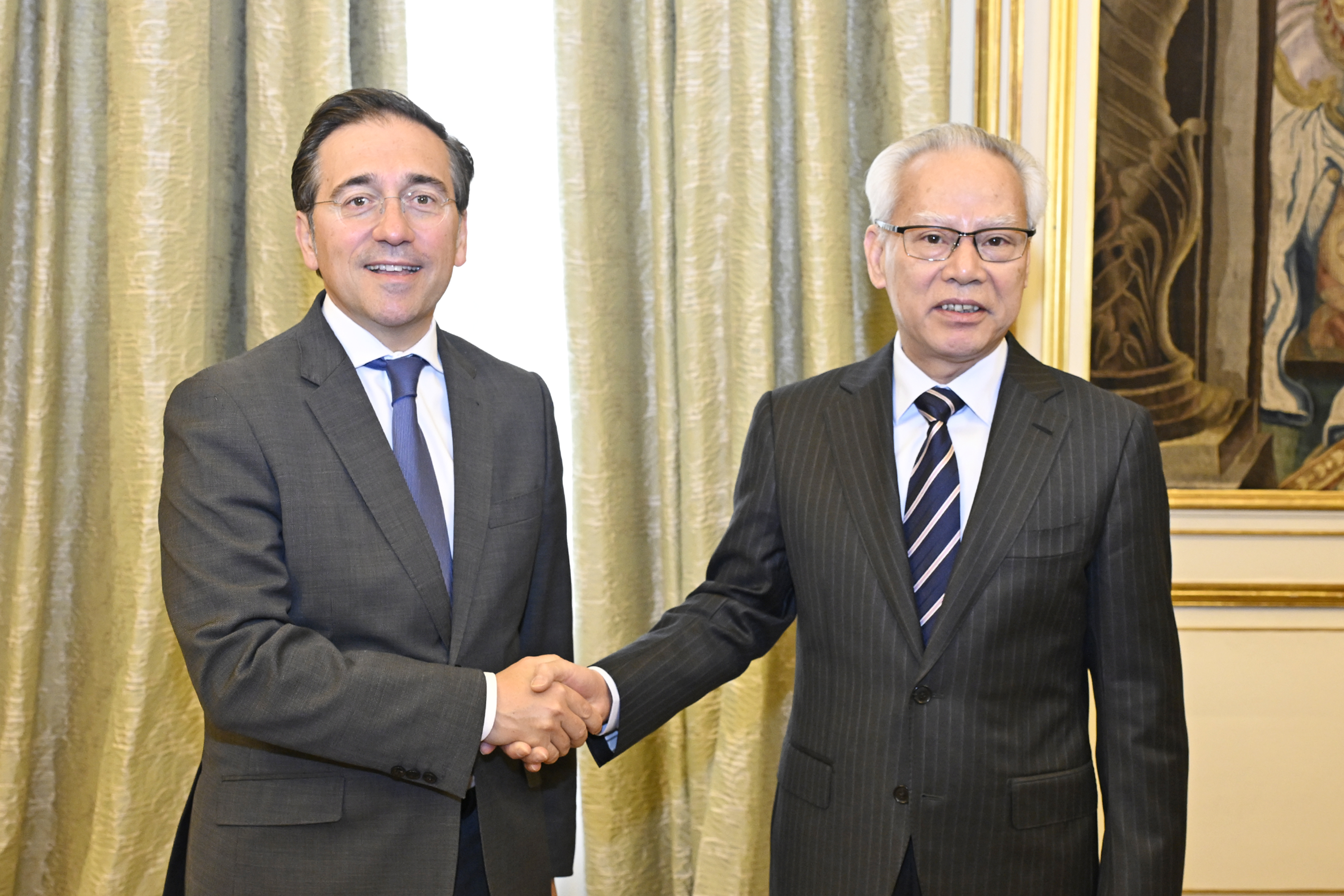 【即時新聞】行政長官岑浩輝於當地時間22日上午,在馬德里與西班牙外交、歐盟和合作大臣何塞·曼努埃爾·阿爾瓦雷斯·布埃諾(José Manuel Albares Bueno)會面,藉此為未來澳門與西班牙加強經貿、文化及創科等方面的交流合作奠定良好基礎,雙方同意繼續保持對話,推動相互合作向前邁進。