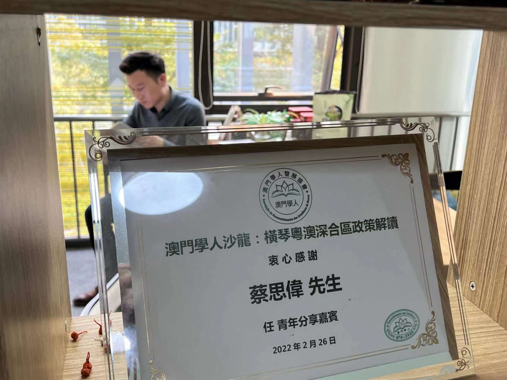 今年5月初,共青團珠海市委員會公佈了2023尋找「珠海好青年」主題活動獲評名單,其中琴澳麥芽(珠海)科技有限公司執行董事、澳門青年蔡思偉獲評了「創新創業好青年」。