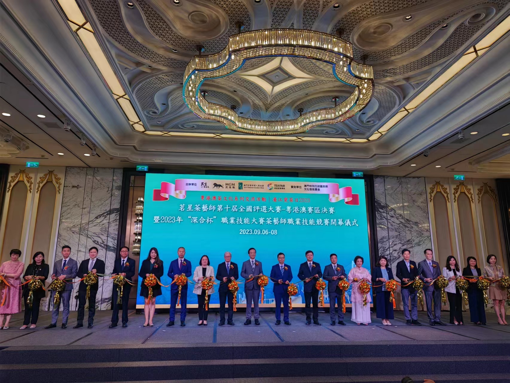 【即時新聞】澳門茶藝專業人員協會與橫琴粵澳深度合作區民生事務局、美高梅及深圳市華巨臣國際會展集團有限公司合辦的“粵港澳茶文化系列交流活動之濠江愛茶日2023”下午3時於美獅美高梅大宴會廳揭幕,除一系列與茶文化結合的宣揚及表演外,同場舉辦茗星茶藝師第十屆全國評選大賽粵港澳賽區決賽暨2023年“ 深合杯”職業技能大賽茶藝師職業技能競賽開幕儀式。舉辦方希望藉由在澳門舉辦茶藝師職業技能競賽,讓餐飲服務茶藝從業員能學以致用,展現自我才能,促進澳門旅遊、餐飲及服務業人員發展,培育澳門茶文化的優秀人才,推動澳門成為多元產業基地,促進大灣區及全球中華文化交流融合。活動獲文化發展基金贊助。