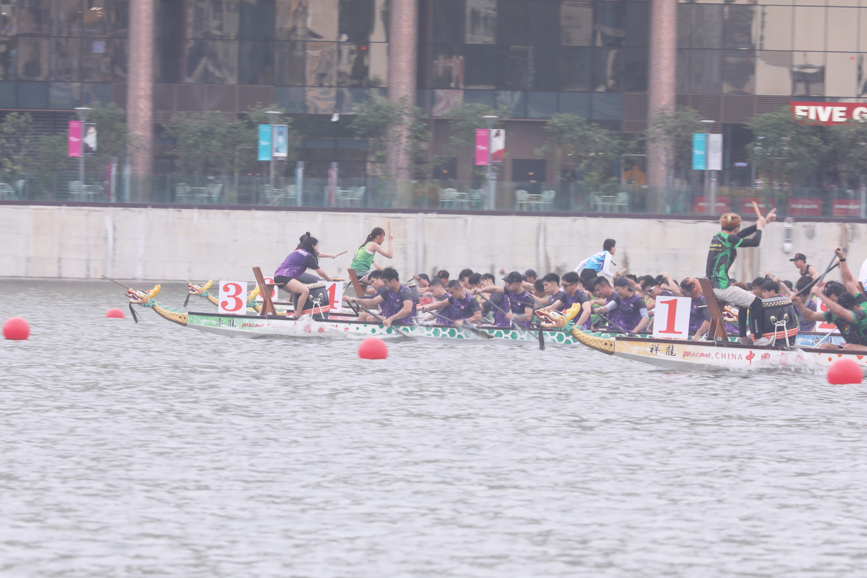 澳門公開組標準龍500米及女子組標準龍500米組決賽昨日下午2時50分展開,賽前主辦單位安排精彩暖場表演,帶動現場氣氛;隨著賽事開始,各隊施展渾身解數,在南灣湖上演了一場龍爭虎鬥,比賽過程非常緊張刺激,引得現場觀眾不停歡呼喝采,氣氛熾熱;經過連場競逐後,奪標熱門的消防局終以1分53秒978奪得公開組標準龍500米冠軍,澳娛綜合及永利分別獲得亞軍和季軍。女子組由澳門青少年發展協會以2分13秒825奪冠,亞軍和季軍分別為金沙中國、澳娛綜合蓮花龍舟隊。