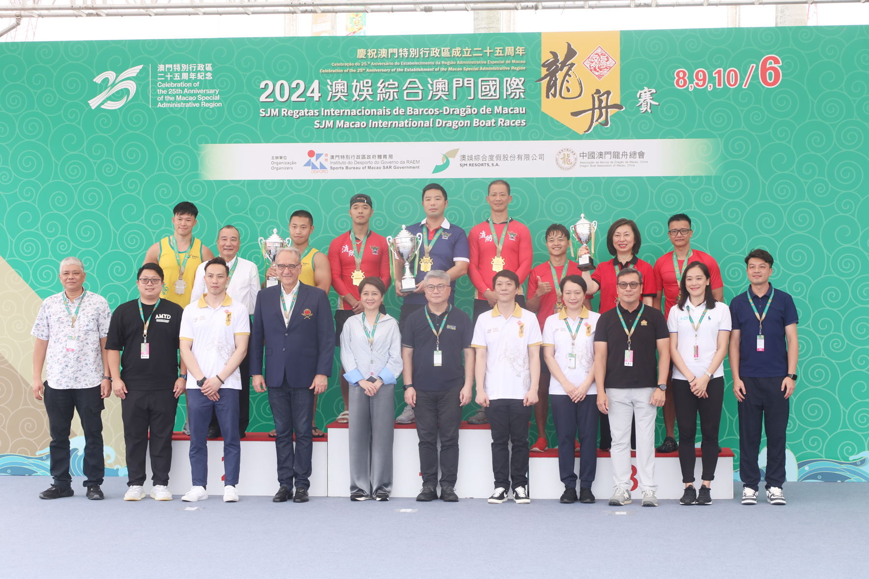 【特訊】體育局、澳娛綜合及中國澳門龍舟總會主辦,市政署及行政公職局協辦的「2024澳娛綜合澳門國際龍舟賽」昨日在南灣湖水上活動中心舉行澳門公開組標準龍500米及澳門女子組標準龍500米的賽事。經過連場競逐後,消防局奪得公開組冠軍,澳門青少年發展協會勇奪女子組冠軍。而今日端午節正日將進行賽事重頭戲澳門國際龍舟邀請賽。