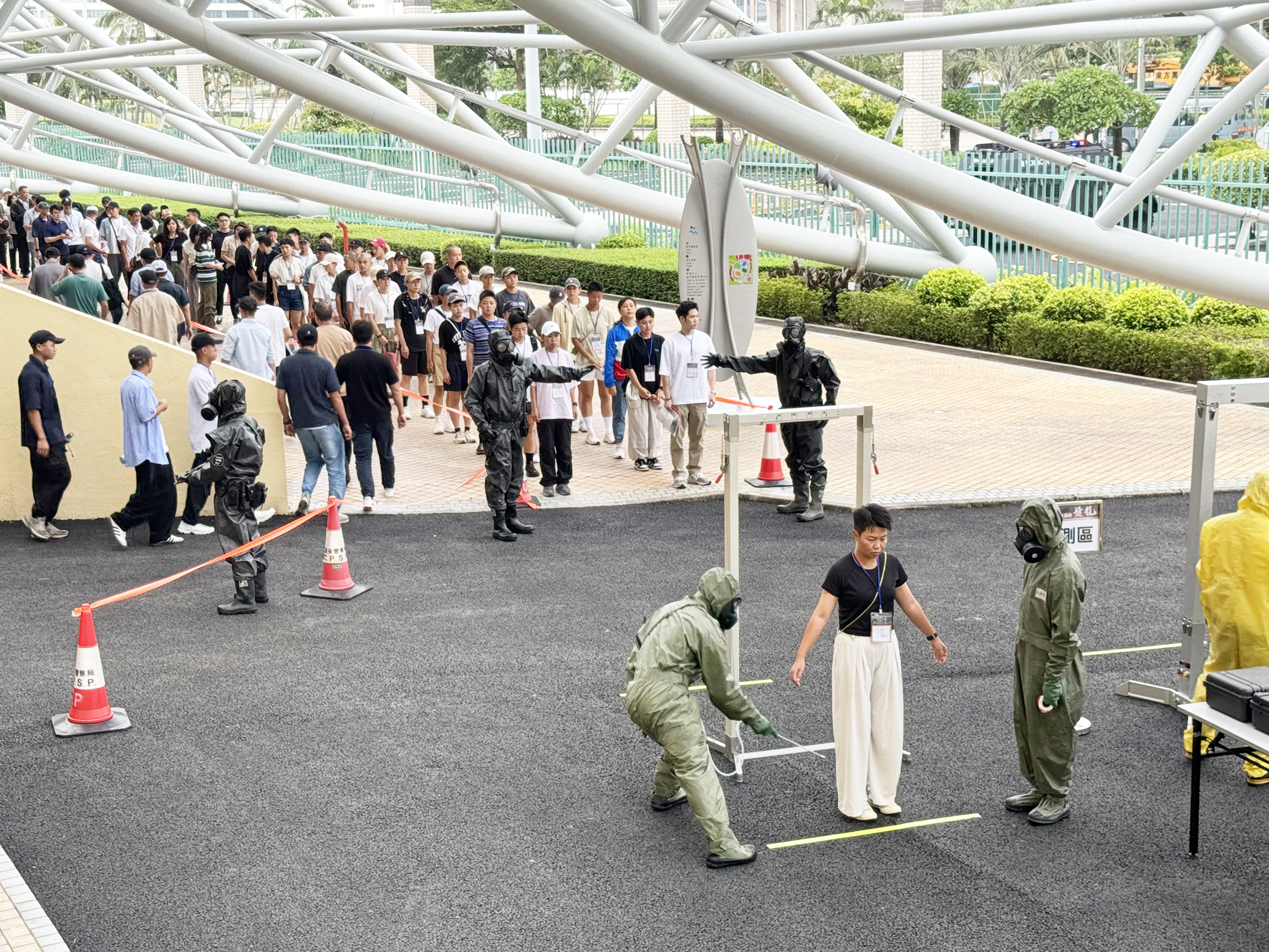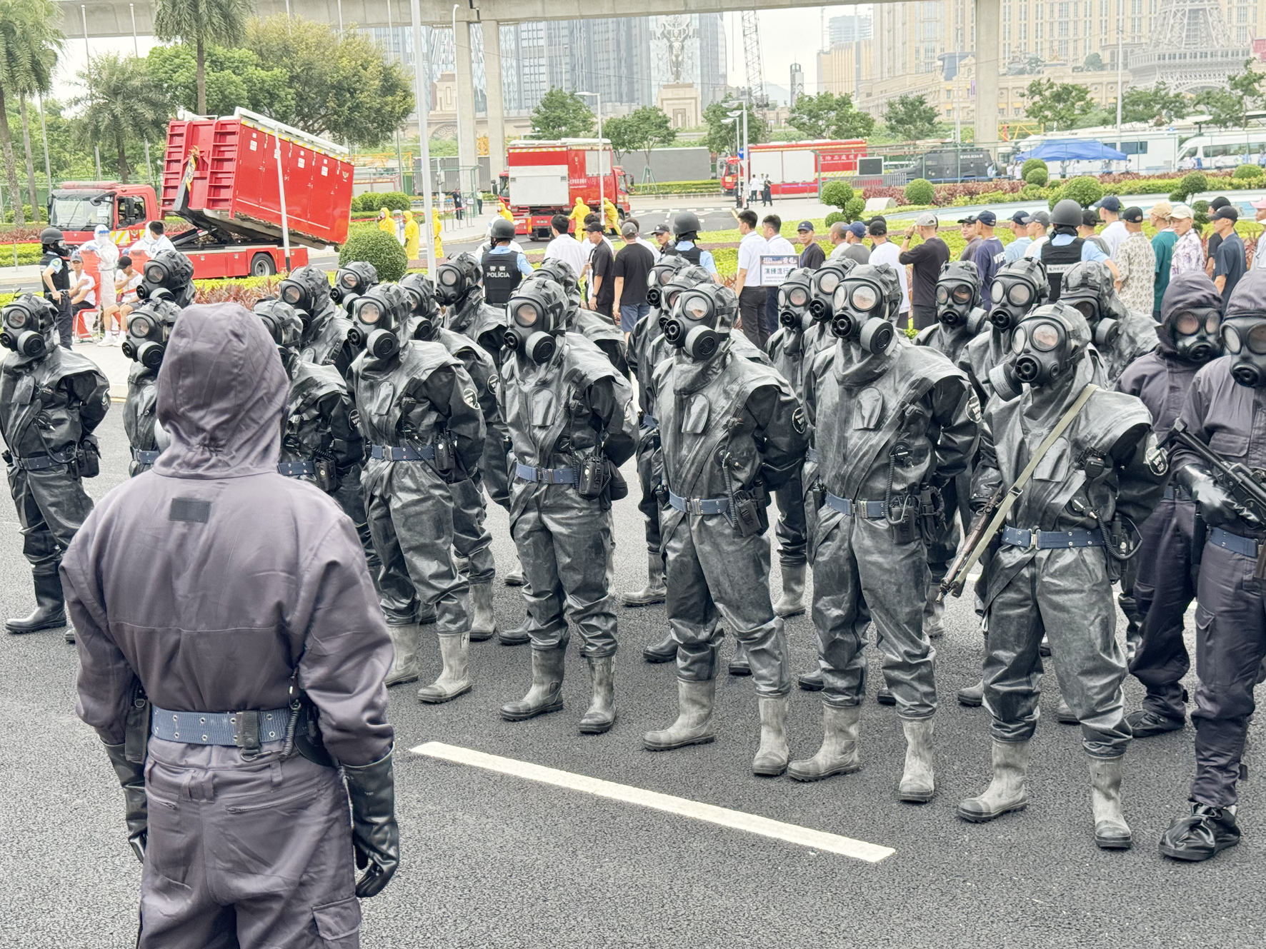 駐澳部隊副參謀長劉歡表示,駐澳部隊派出防化、特戰和通訊等分隊參與演練,將圍繞大規模化學恐怖襲擊的行動處置,主要擔負沾染檢查、人員洗消、化學偵查、危化品轉運、場地洗消、廢料廢液處置等行動,通過演習有助進一步增強軍警共同應對突發事件的指揮控制、通信聯絡。有信心在雙慶年期間,與保安部門共同維護澳門社會安寧及繁榮穩定。