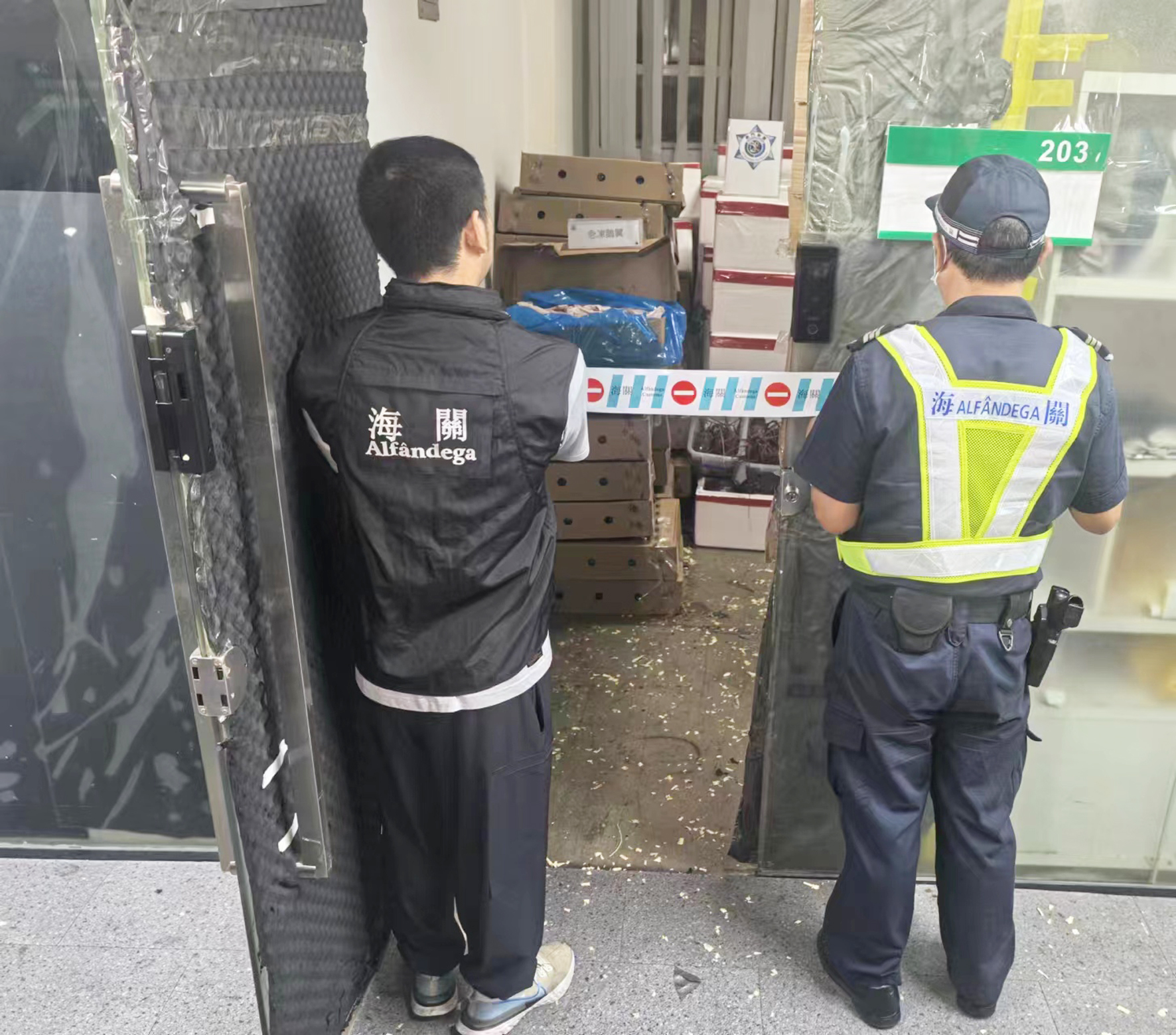澳門海關關檢處余展強代處長表示,海關經過近日對水貨活動趨勢分析,加強對市內各大工廈巡查。經過調查和監視,於昨日傍晚在目標單位內搜獲價值約19萬澳門元食材,並截獲一名涉案男負責人。