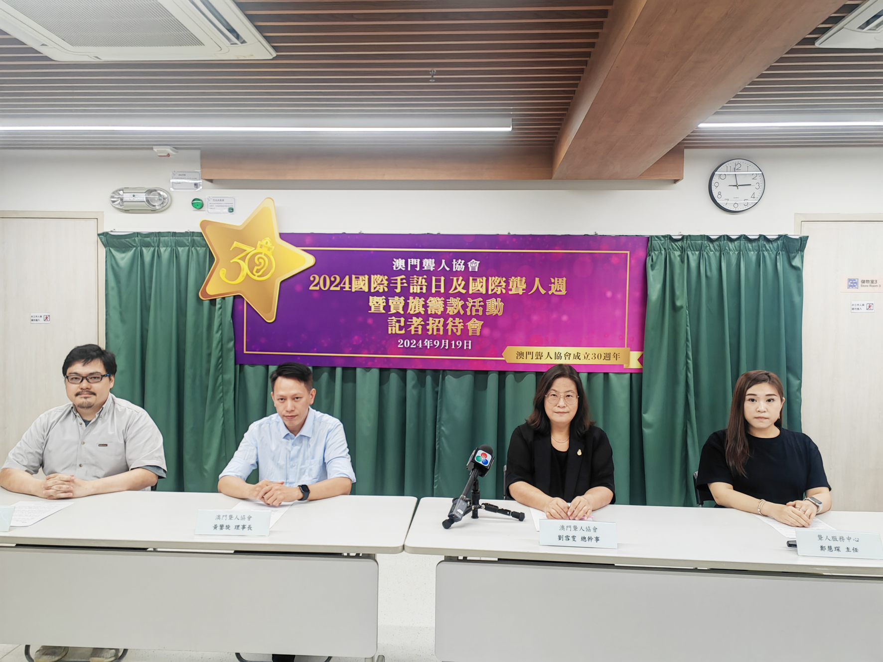 協會昨日下午三時假該會會址舉行記者會,該會理事長黃鑒旋、總幹事劉雪雯、司庫勞永鏗及聾人服務中心主任鄭慧琛等介紹活動詳情。